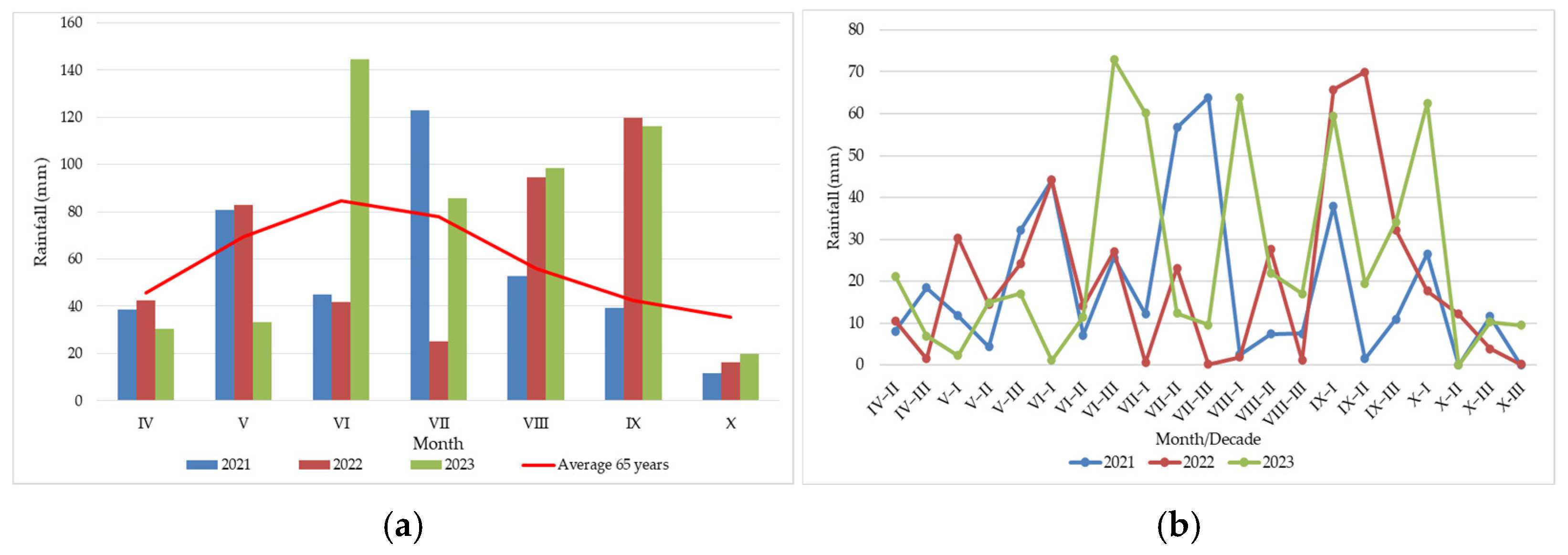 - Simon, A.; Ceclan, A.; Has, V.; Varga, A.; Russu, F.; Chetan, F.; Bardas, M. Evaluation of the Impact of Sowing Season and Weather Conditions on Maize Yield. AgroLife Sci. J. 2023, 12, 207–214. [Google Scholar] [CrossRef]