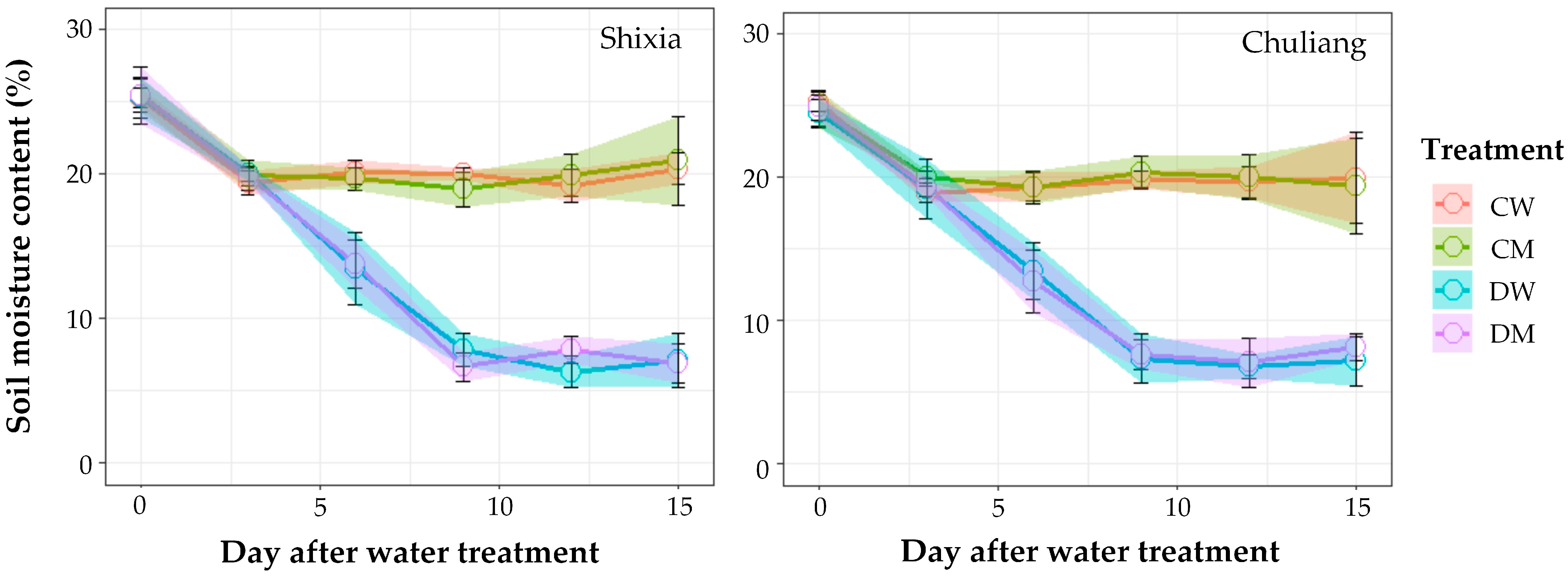 - Liu, Q.; Feng, Z.; Xu, W.; Vetukuri, R.R.; Xu, X. Exogenous melatonin-stimulated transcriptomic alterations of Davidia involucrata seedlings under drought stress. Trees 2021, 35, 1025–1038. [Google Scholar] [CrossRef]