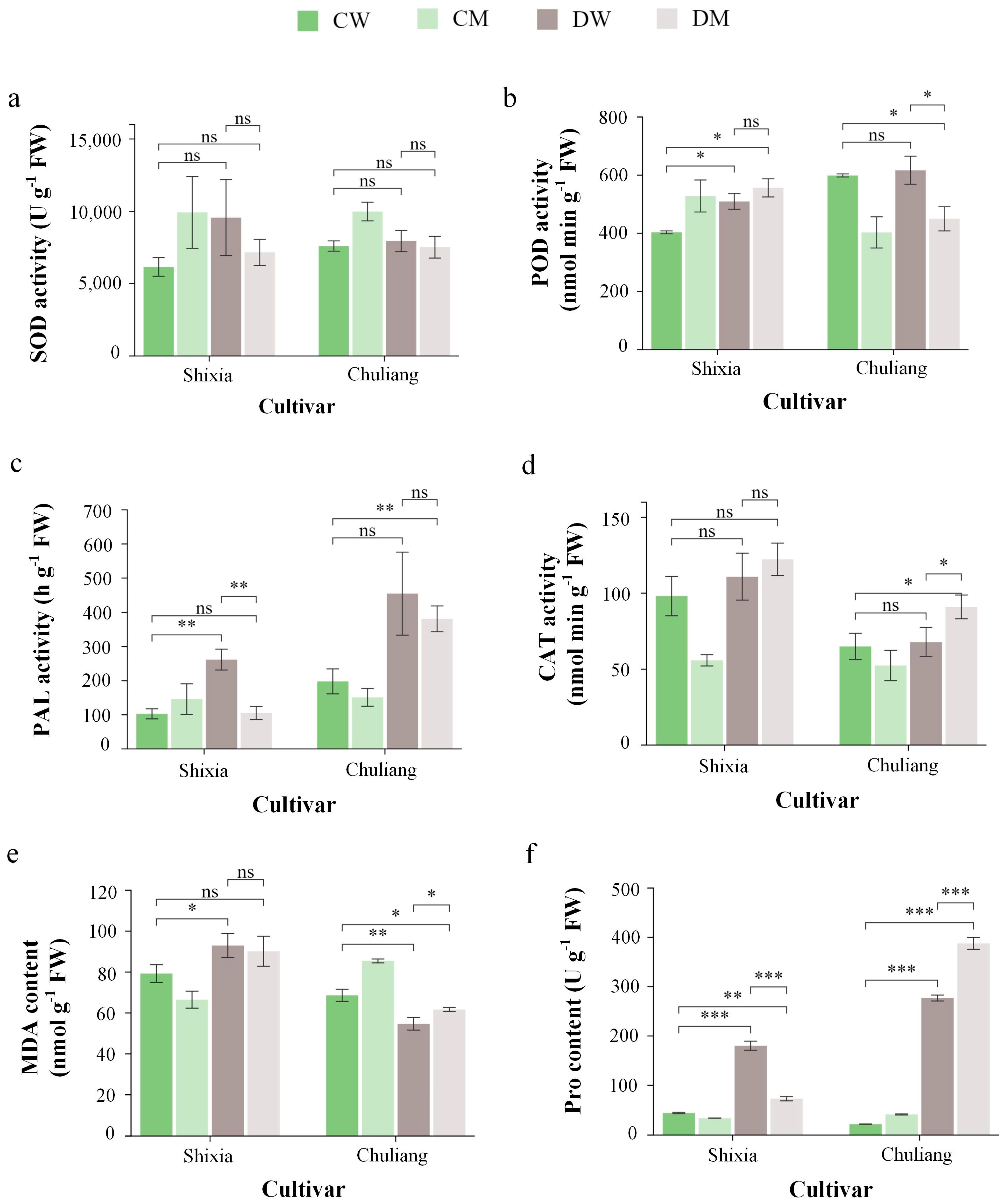 - Zhi, M.; Li, X. Improvement on the method for measuring proline content. Plant Physiol. J. 2005, 41, 355–357. [Google Scholar] [CrossRef]