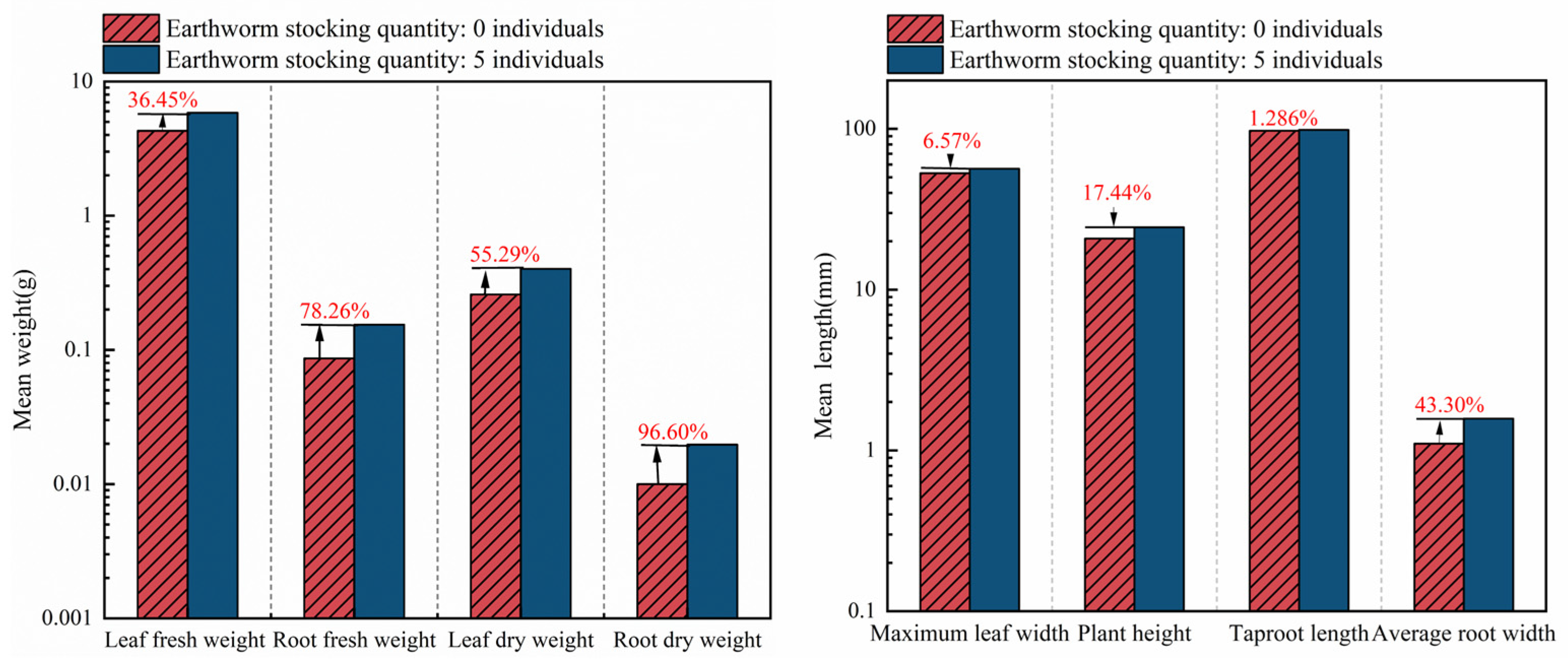 3.3. Effects of Biological Tillage on Biological Characteristics, Root Systems, and Yield of Brassica Chinensis L. Under Different Conditions of Earthworm Food, Soil Moisture, and Soil Compaction