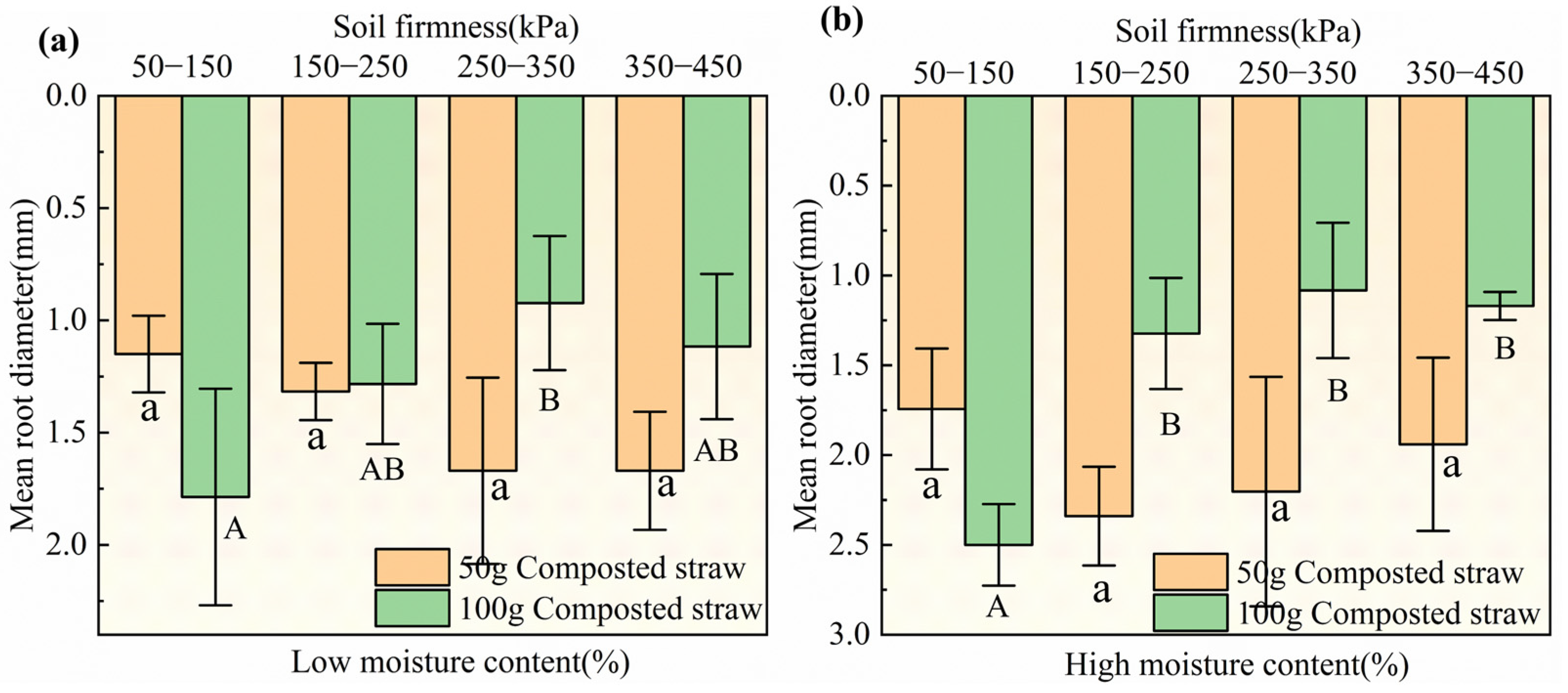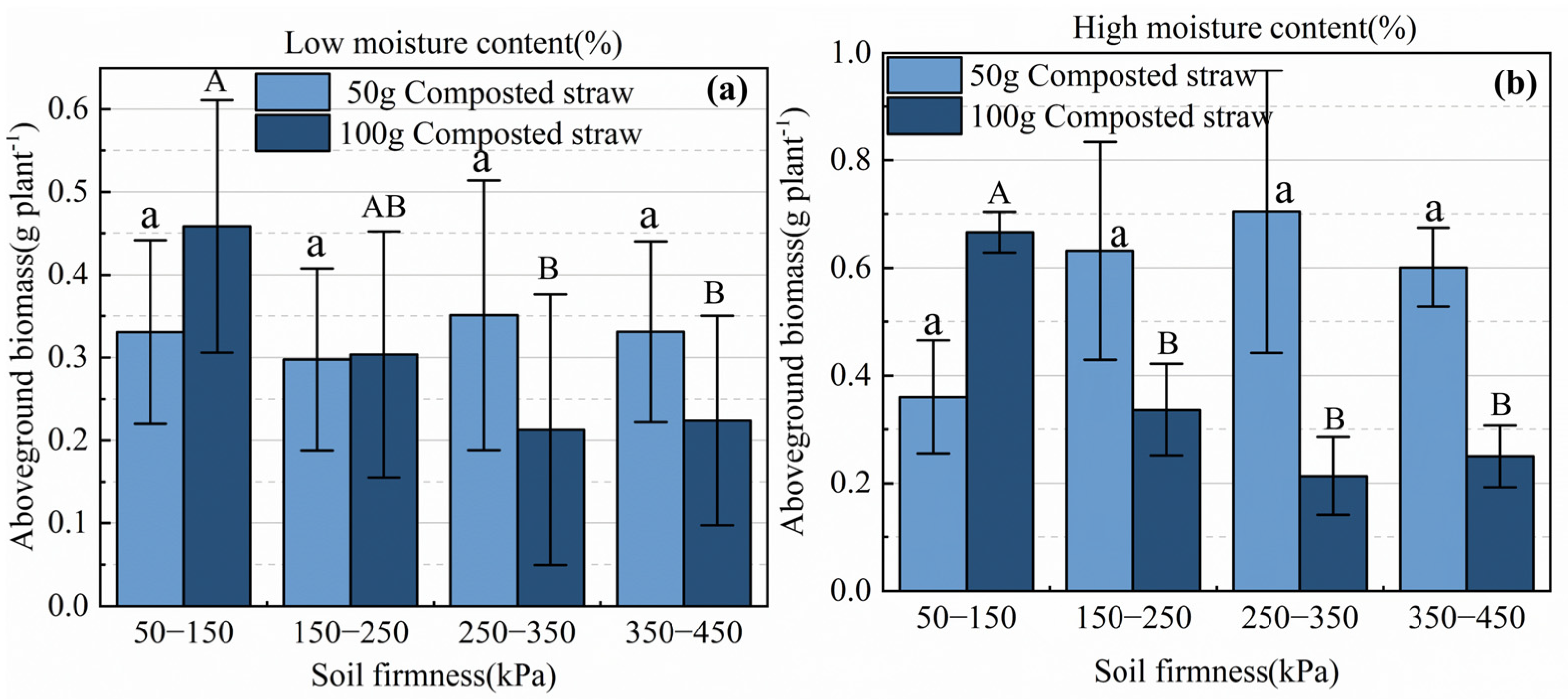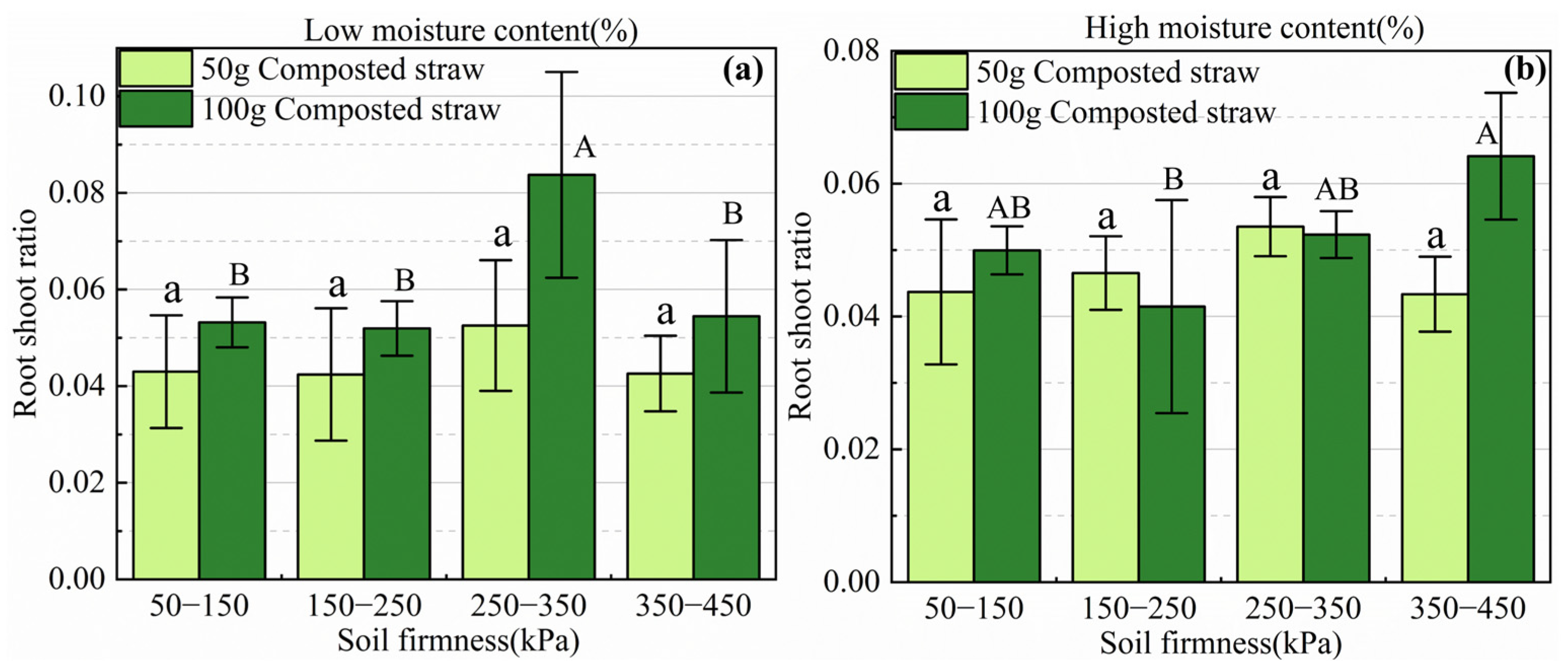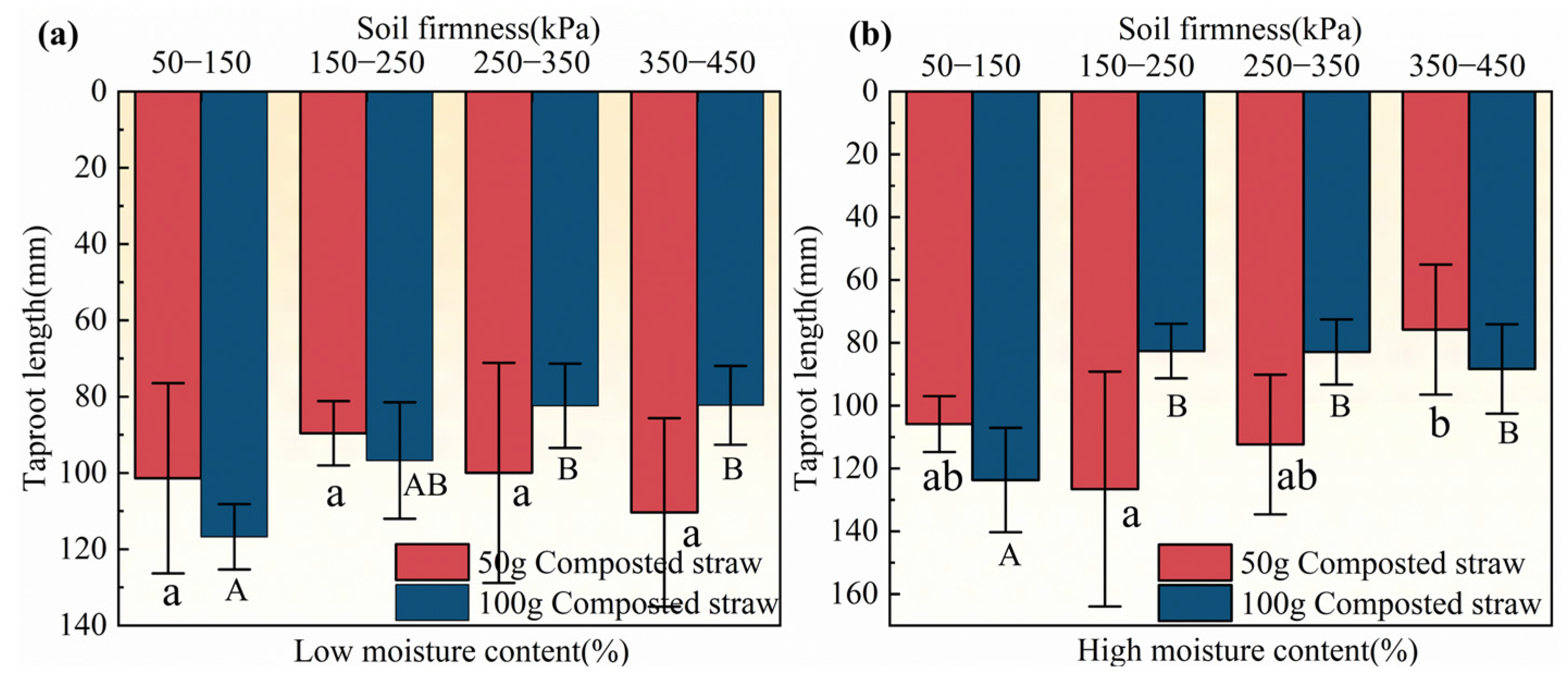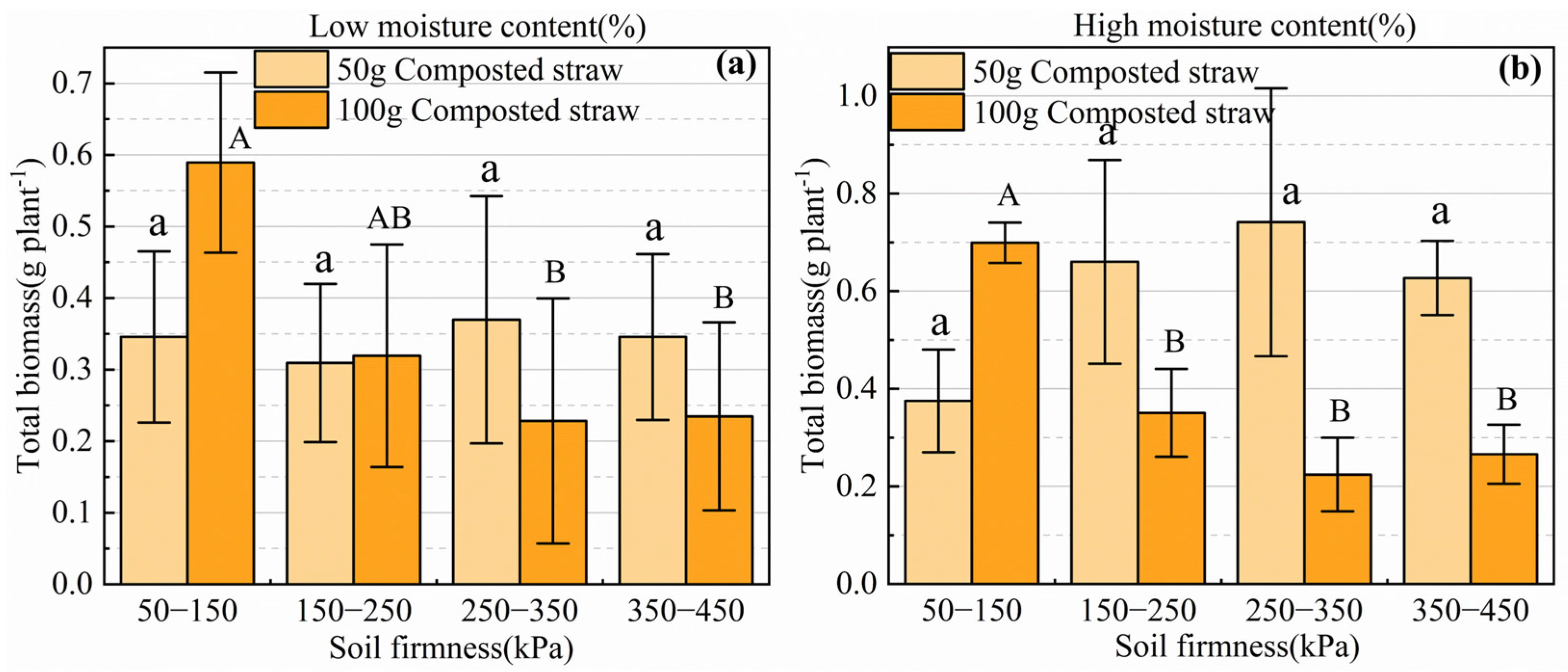 | Case | Factor A | Factor B | Factor C | Experimental Parameter Composted Straw (g) | Soil Moisture Content (%) | Soil Firmness (kPa) |