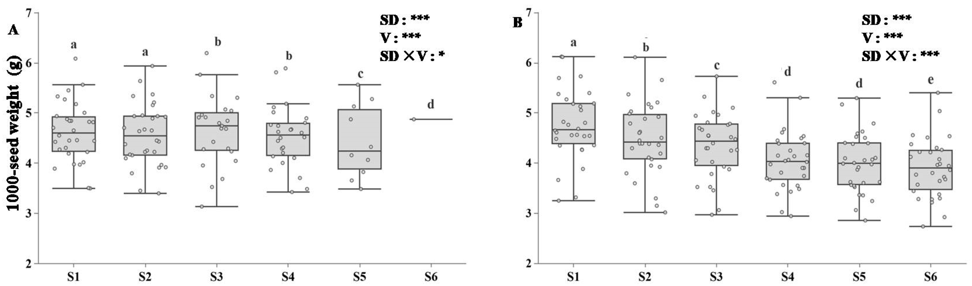 - Luo, T.; Sheng, Z.; Zhang, C.; Li, Q.; Liu, X.; Qu, Z.; Xu, Z. Seed characteristics affect low-temperature stress tolerance performance of rapeseed (Brassica napus L.) during seed germination and seedling emergence stages. Agronomy 2022, 12, 1969. [Google Scholar] [CrossRef]