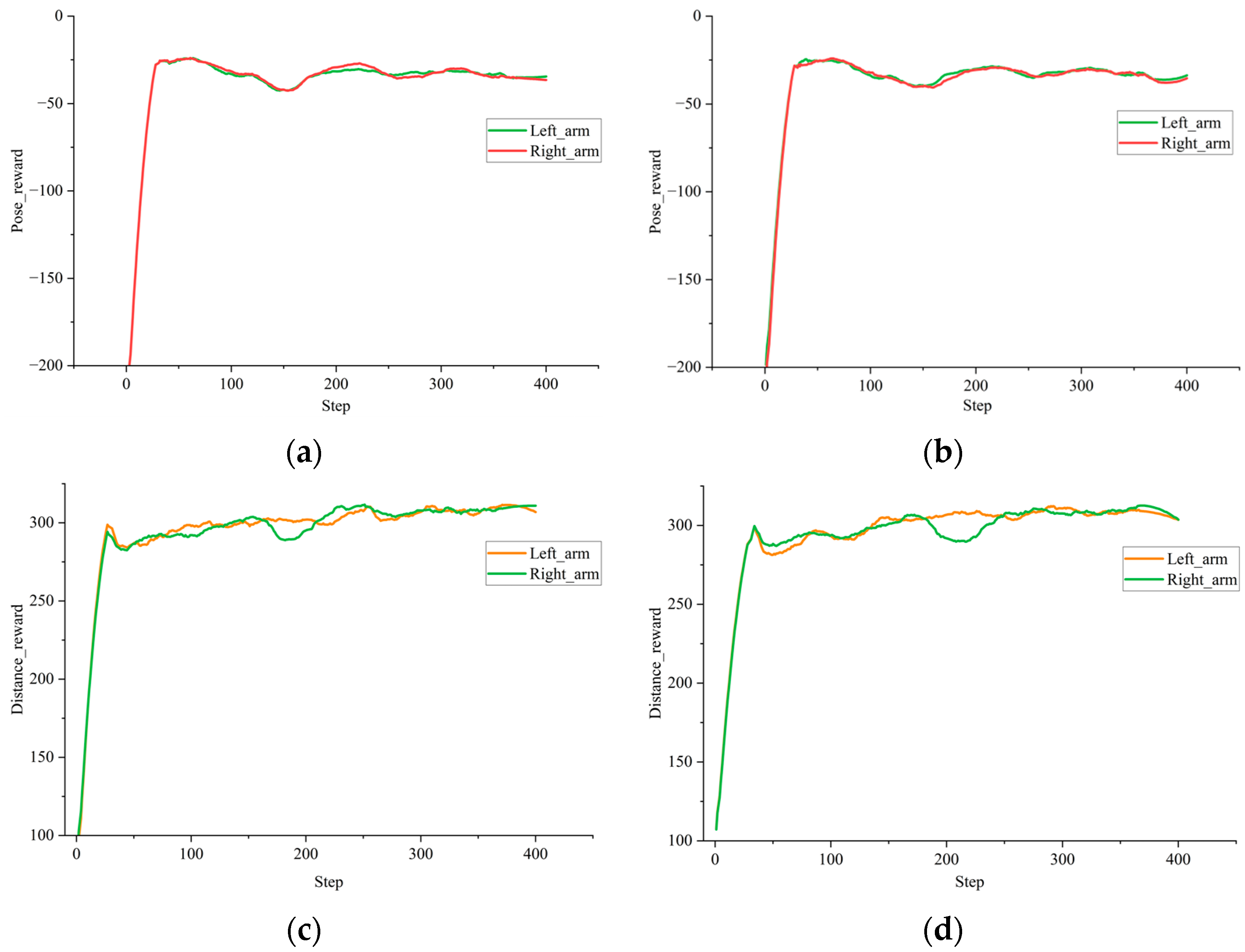 Nevertheless, in the presence of the aforementioned errors and uncertainties, the system still achieved a picking success rate of over 81% and maintained zero collisions between the dual arms throughout. Simultaneous collisions mainly occur between the robotic arm and branch obstacles. This demonstrates the effectiveness and robustness of the MAPPO-MOGPS algorithm in maintaining the safety of dual-arm collaborative operations in complex scenarios.
