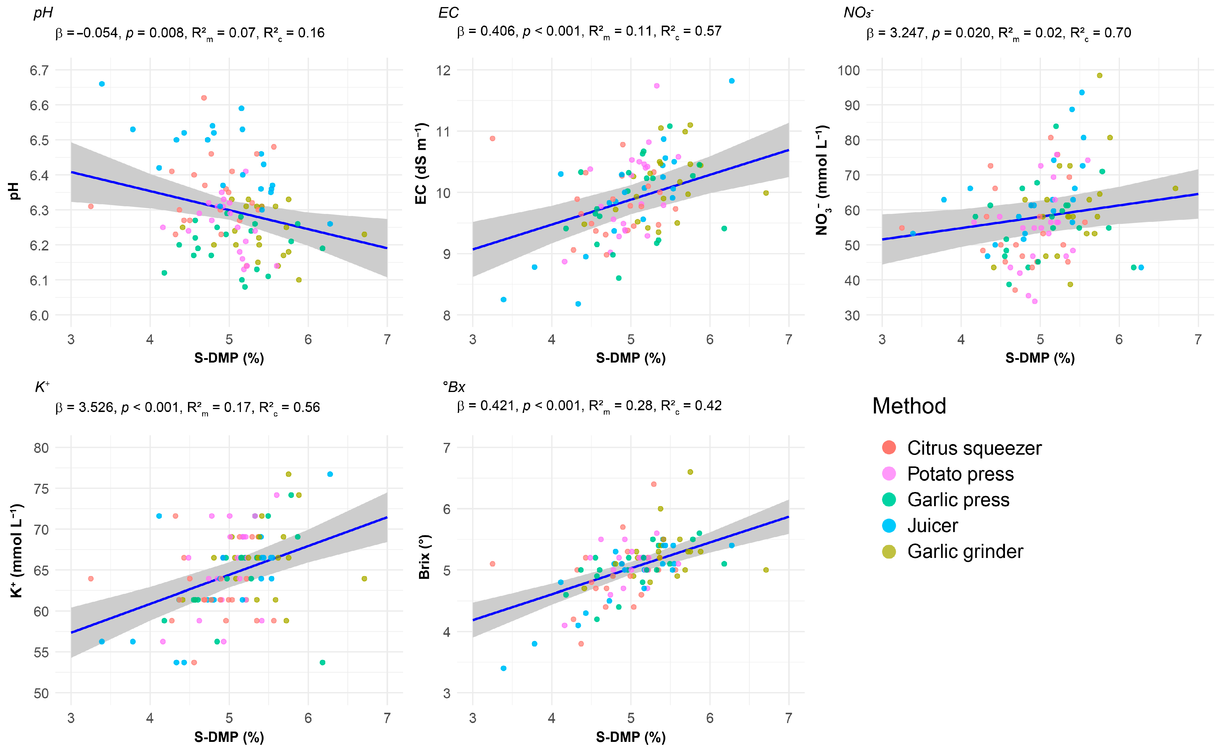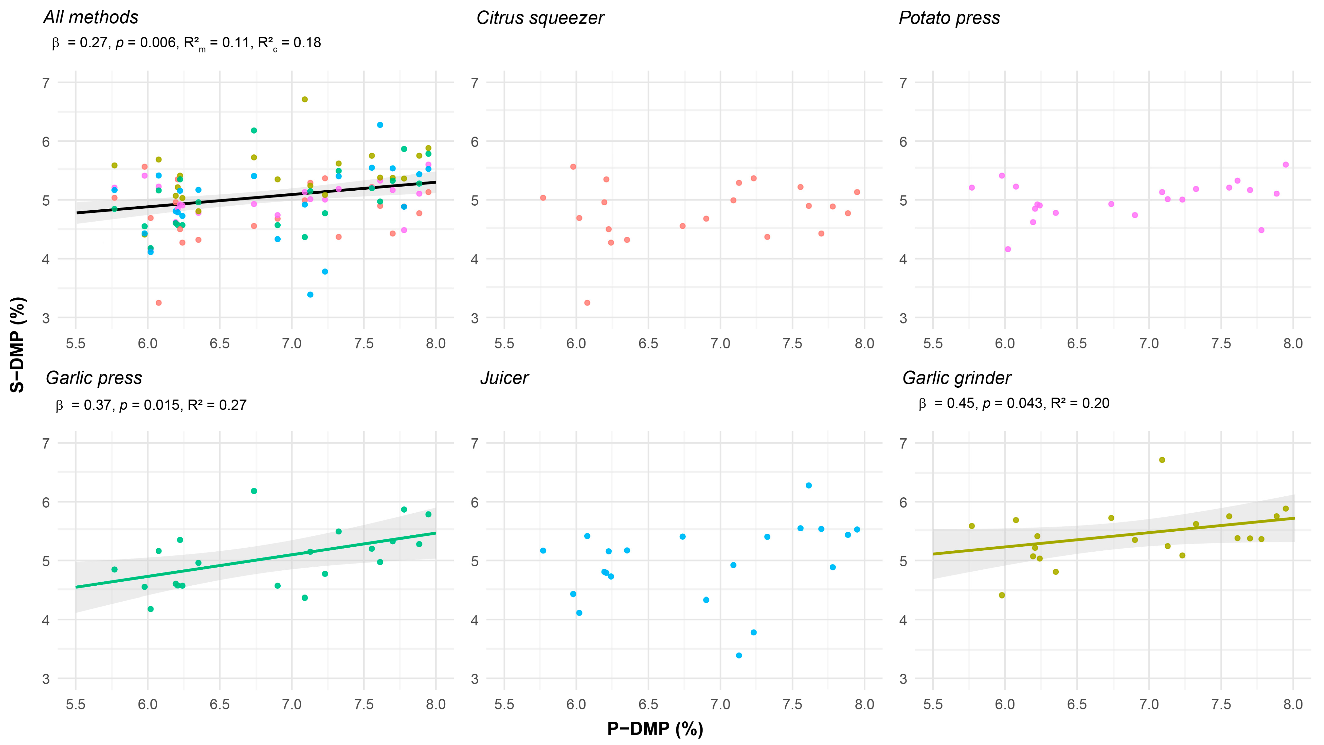 | Method | Yield (µL g−1) | S-DMP (%) | S-DMC (mg mL−1) |