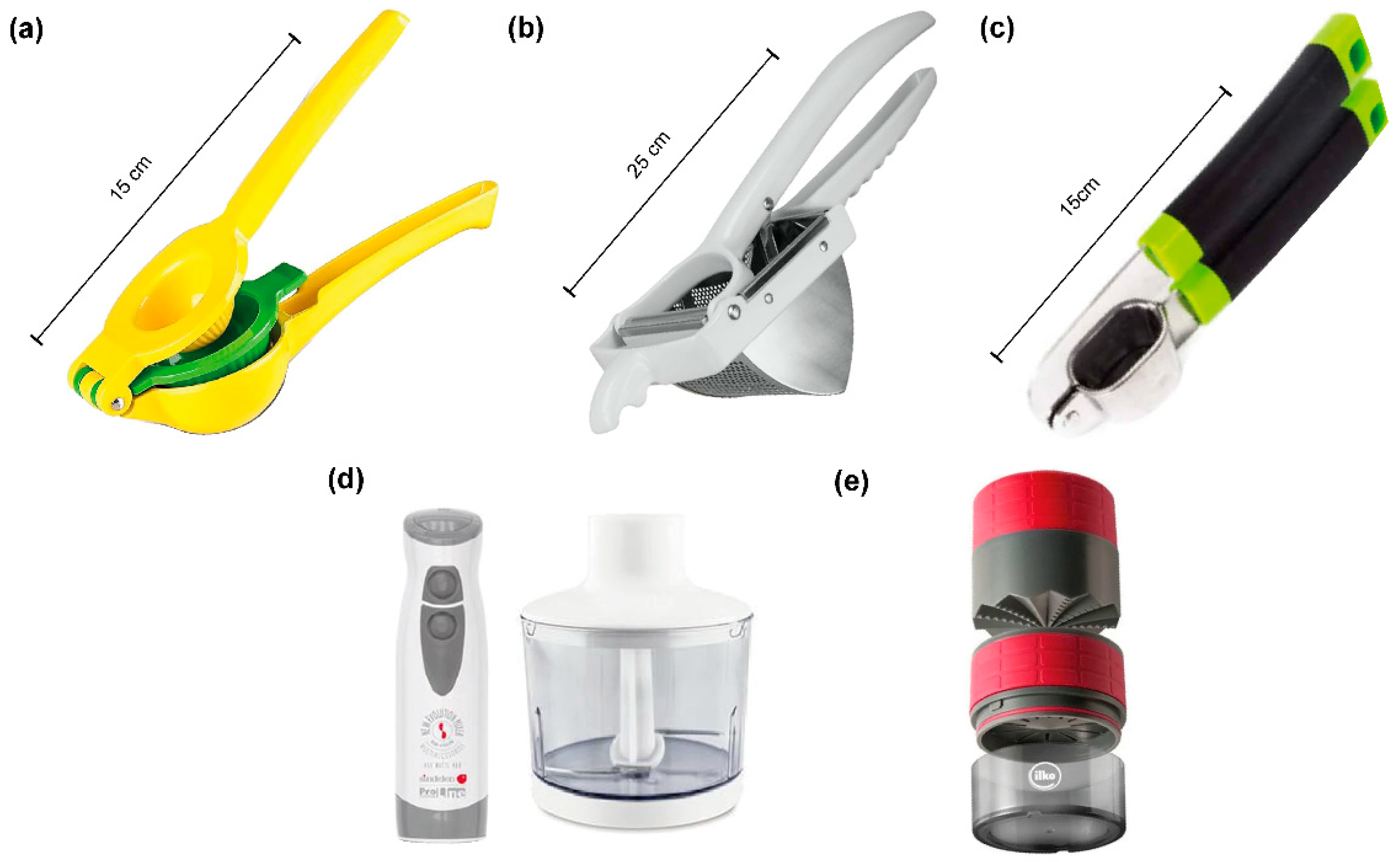 | Garlic press | 64.43 ± 0.87 (a) | 6.48 | [62.55, 66.49] | [53.71, 81.84] | 9.95 (e) | 0.025 | 0.706 | 3.709 | |