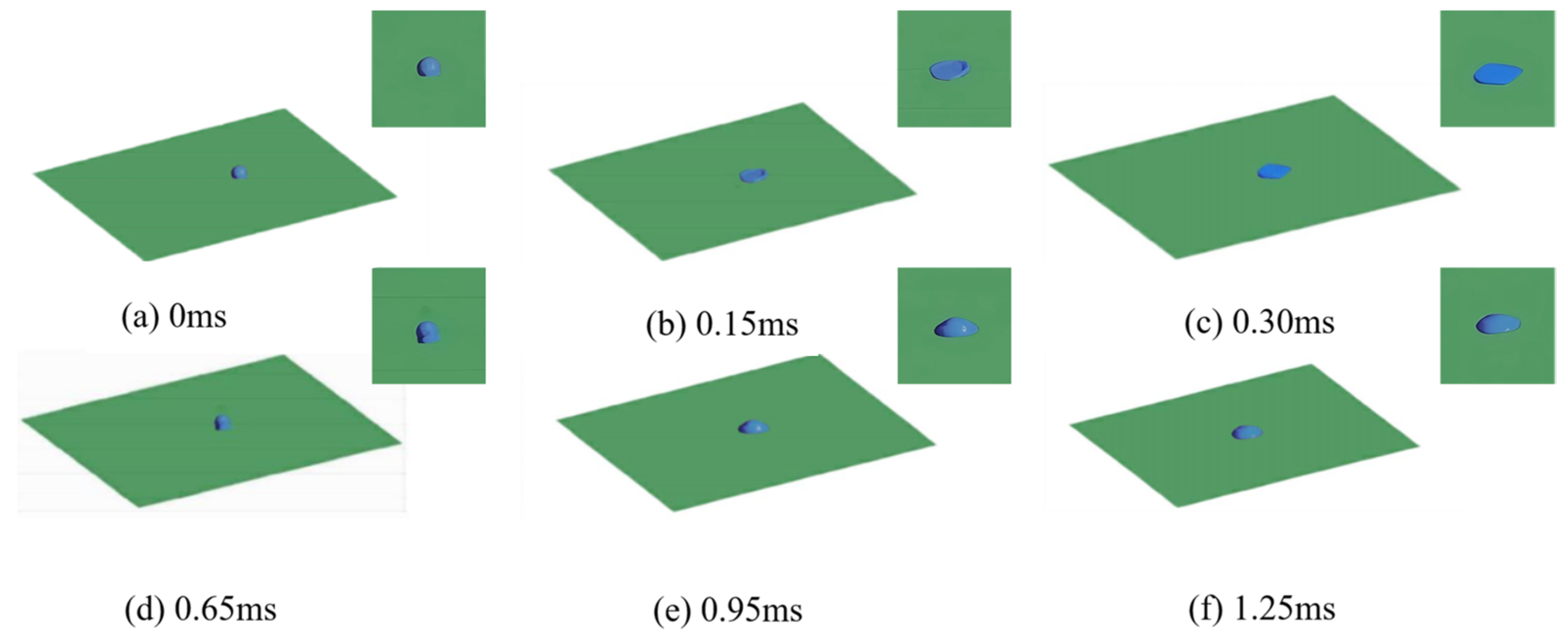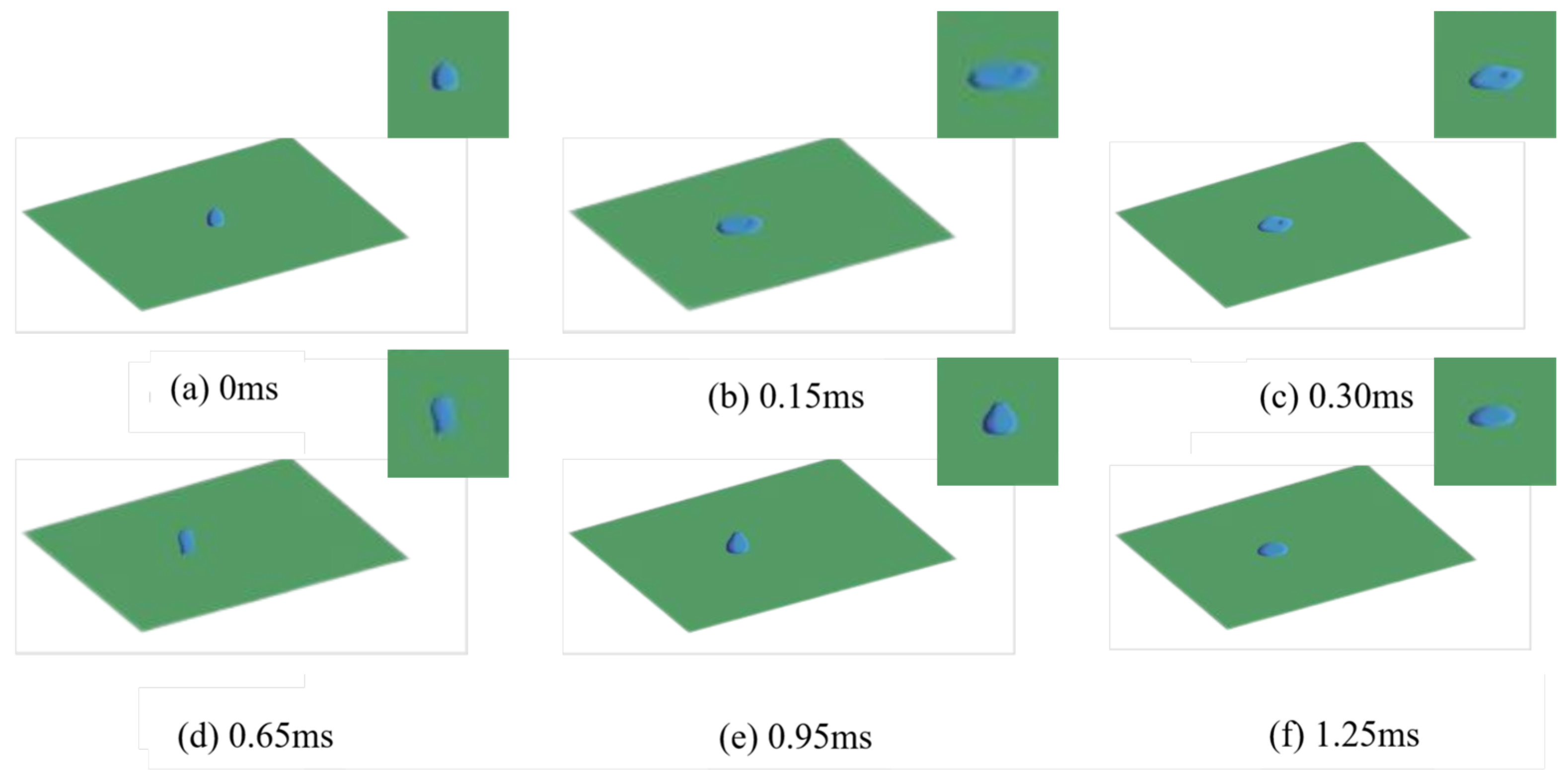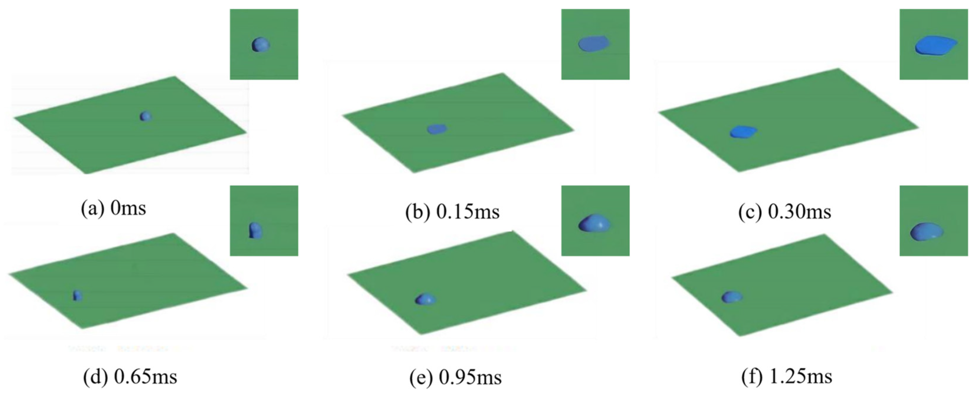 2.2. Numerical Simulation of Motion Characteristics of Droplet Impact on Soybean Leaves