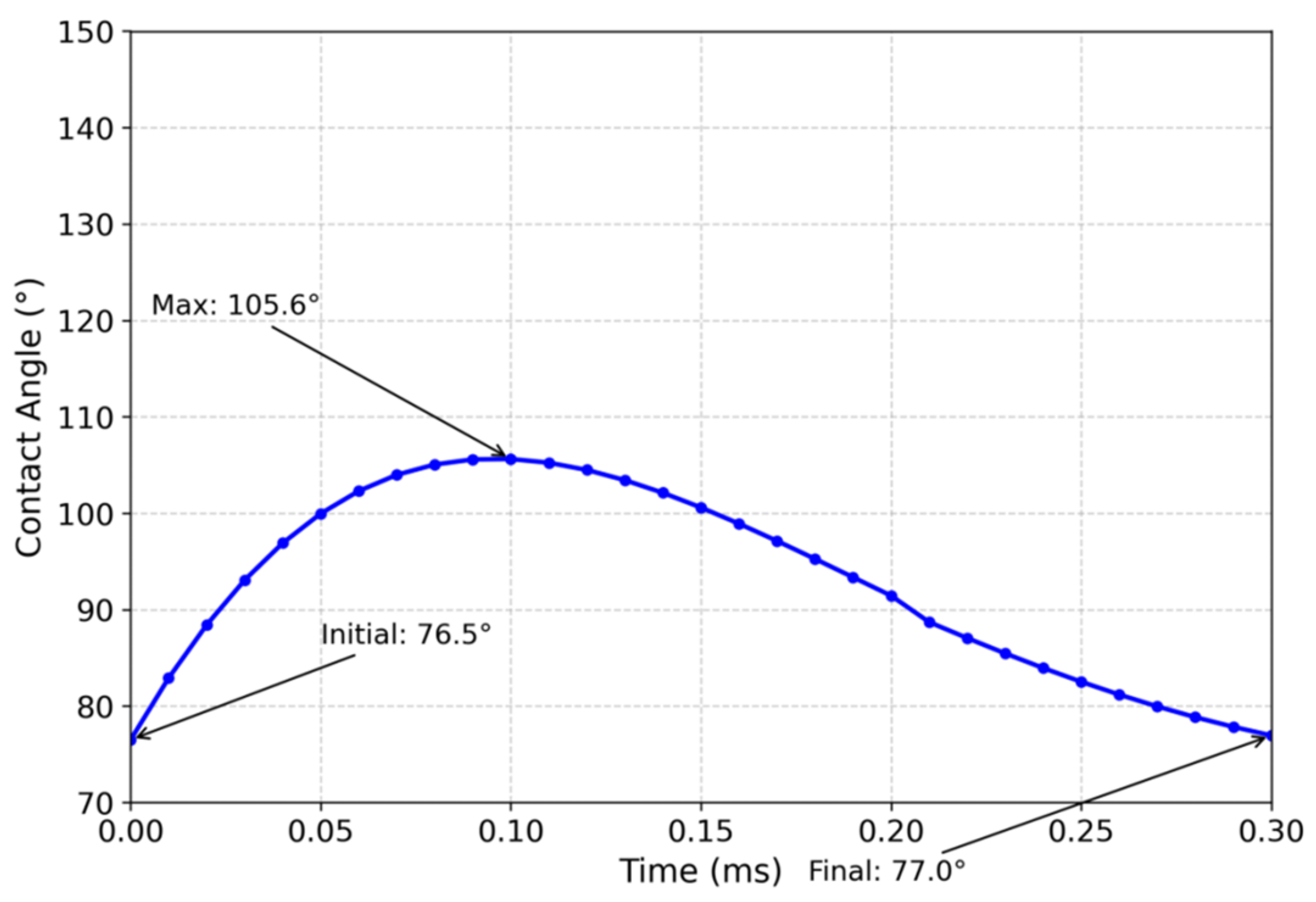 | Grid Type | Total Cells | Minimum Cell Size (μm) | Spread Diameter D/D0 (t = 5 ms) | Slip Distance Smax (mm) |