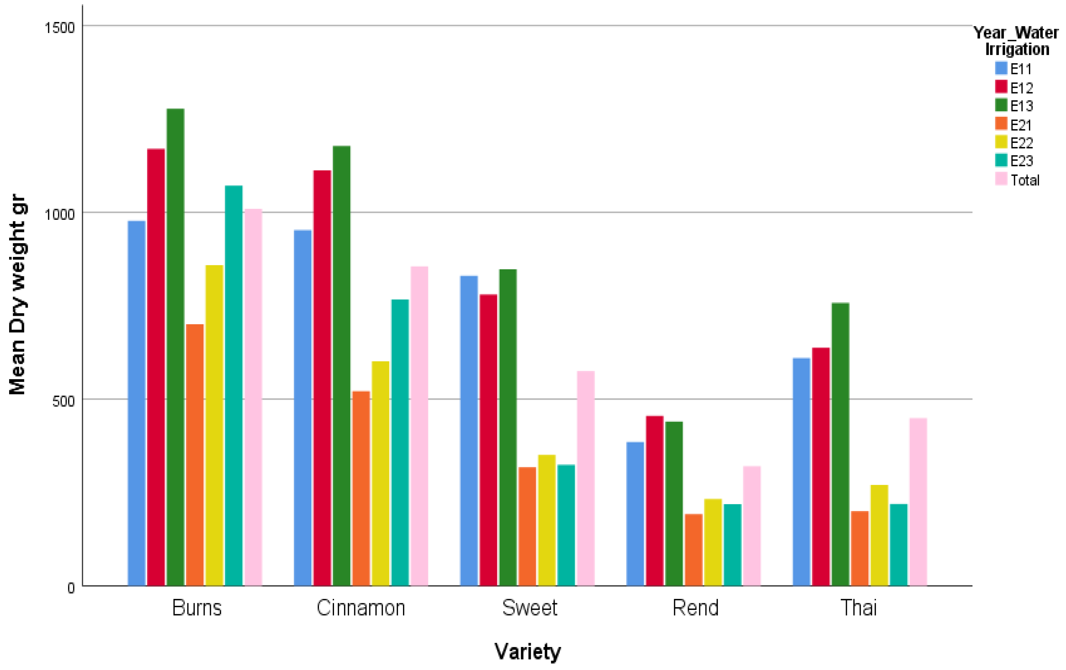 Ocimum basilicum) grown under controlled irrigation treatments. Five varieties were included in the trials: Mrs Burns Lemon, Cinnamon, Sweet, Red Rubin, and Thai [