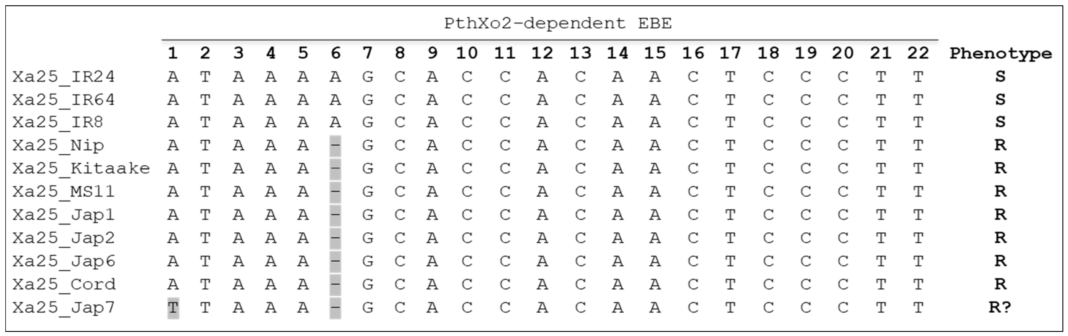 - Zhou, J.; Peng, Z.; Long, J.; Sosso, D.; Liu, B.; Eom, J.S.; Huang, S.; Liu, S.; Vera Cruz, C.; Frommer, W.B.; et al. Gene targeting by TAL effectors reveals cryptic resistance genes and a paradigm for resistance to bacterial blight in rice. Nat. Biotechnol. 2015, 33, 451–455. [Google Scholar] [CrossRef]