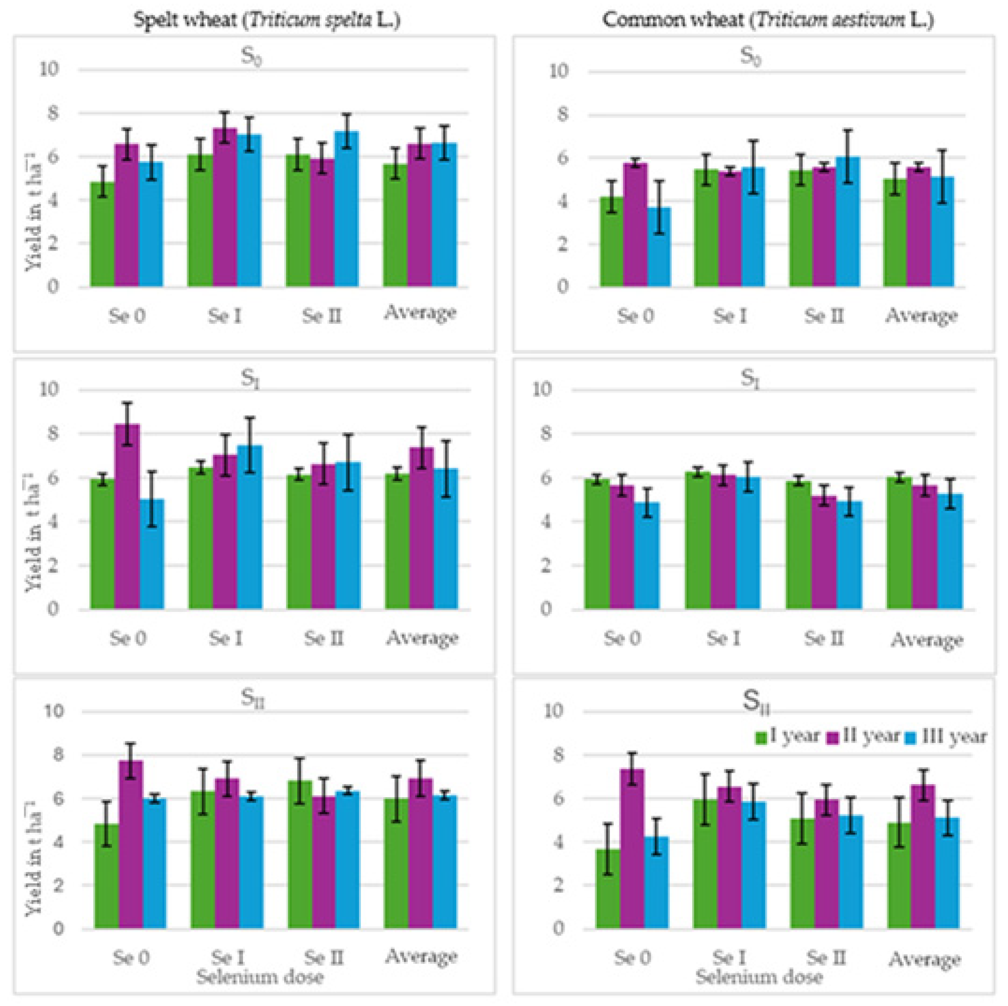 - Zhang, D.; Liu, J.; Cheng, T.; Wang, H.; Zhou, Y.; Gong, Z.; Hu, T. Strategic selenium application methods and timing enhance grain yield, minimize cadmium bioaccumulation, and optimize selenium fortification in Triticum aestivum L. Agronomy 2025, 15, 199. Agronomy 2025, 15, 199. [Google Scholar] [CrossRef]