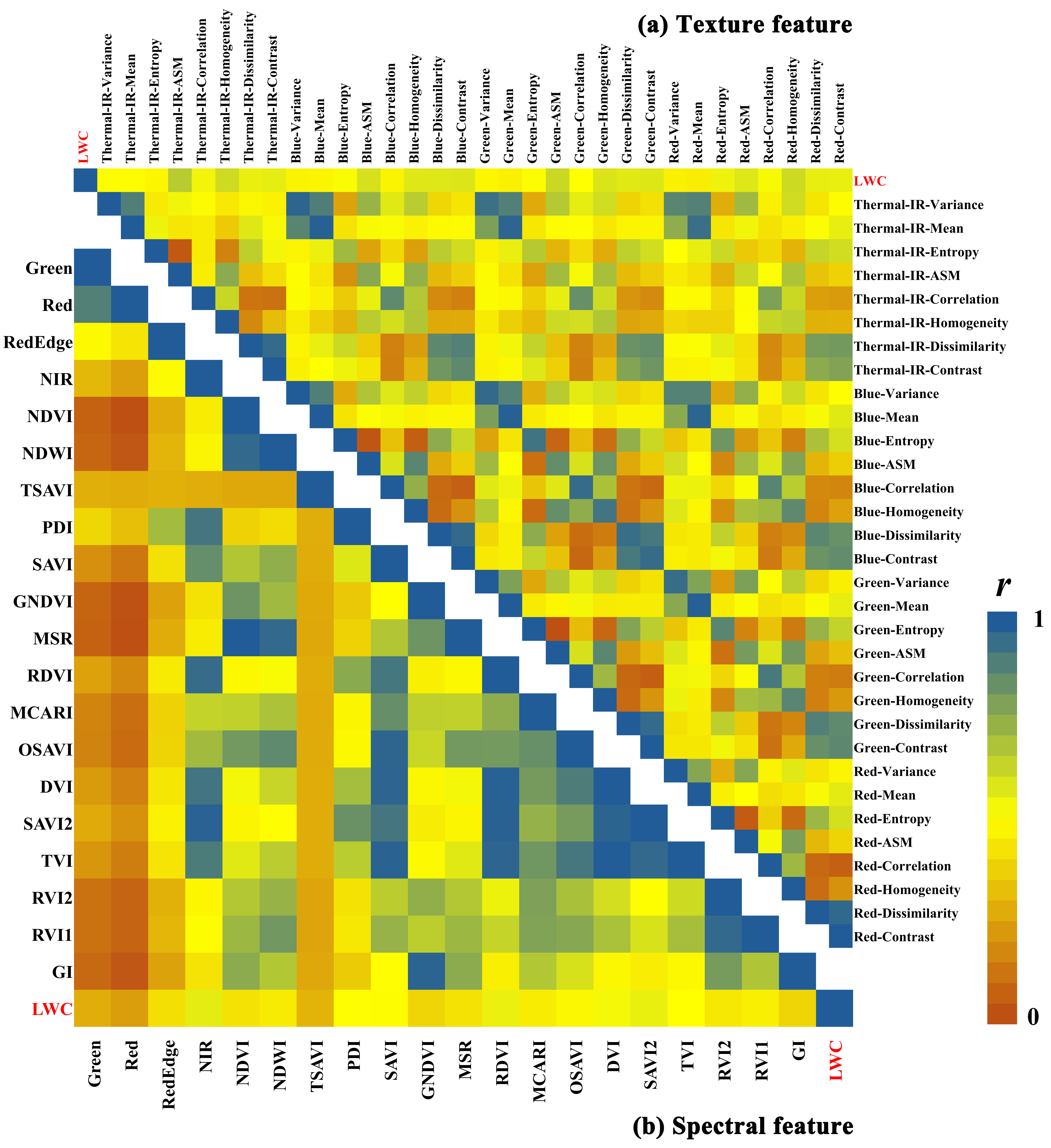 - Wang, Y.C.; Wang, J.L.; Li, J.Y.; Wang, J.; Xu, H.; Liu, T.; Wang, J. Estimating Maize Leaf Water Content Using Machine Learning with Diverse Multispectral Image Features. Plants 2025, 14, 973. [Google Scholar] [CrossRef]
