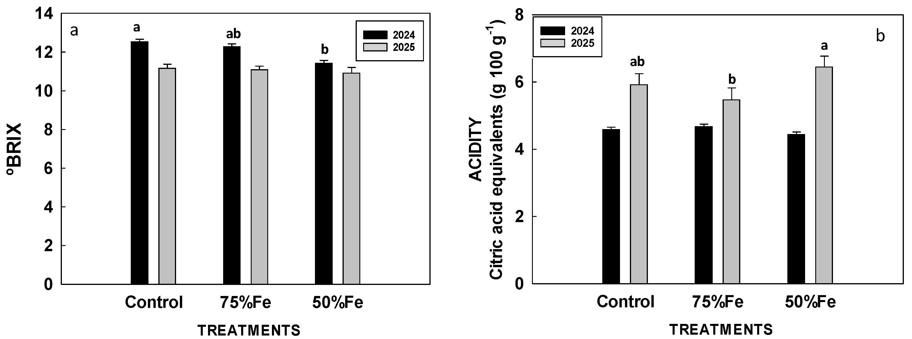 - Cerdán, M.; Sánchez-Sánchez, A.; Juárez, M.; Sánchez-Andreu, J.J.; Jordá, J.D.; Bermúdez, D. Partial replacement of Fe(o,o-EDDHA) by humic substances for Fe nutrition and fruit quality of citrus. J. Plant Nutr. Soil Sci. 2007, 170, 474–478. [Google Scholar] [CrossRef]