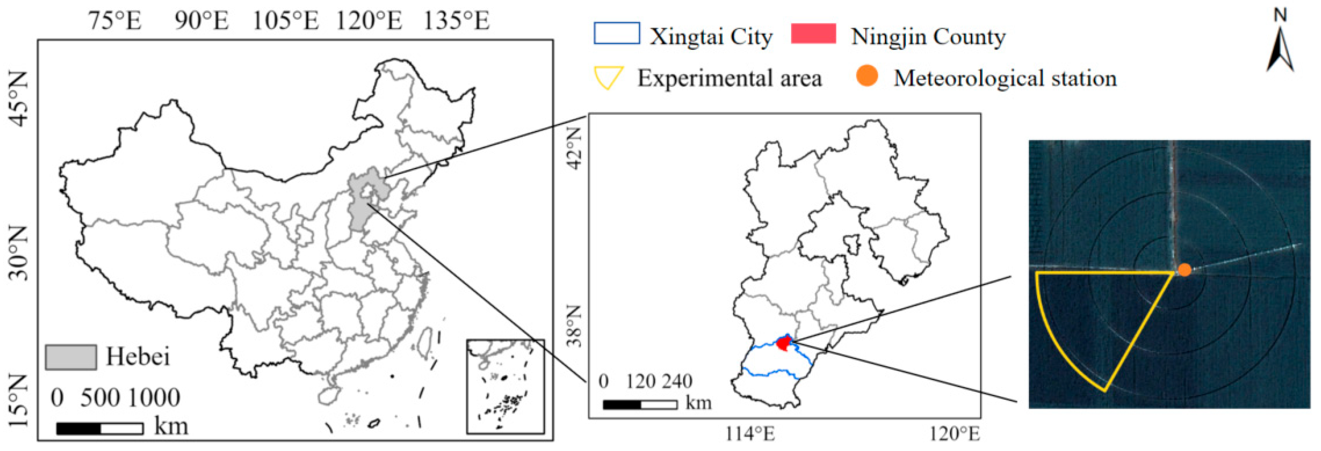 - Zhao, W.; Zhang, B.; Shan, Z.; Li, J.; Zhang, M.; Zhu, C.; Li, Y. A Method and System for Generating Variable Irrigation Prescription Maps for Large-Scale Sprinkler Machines. China Invention Patent No. 202211245118.1, 10 November 2023. [Google Scholar]