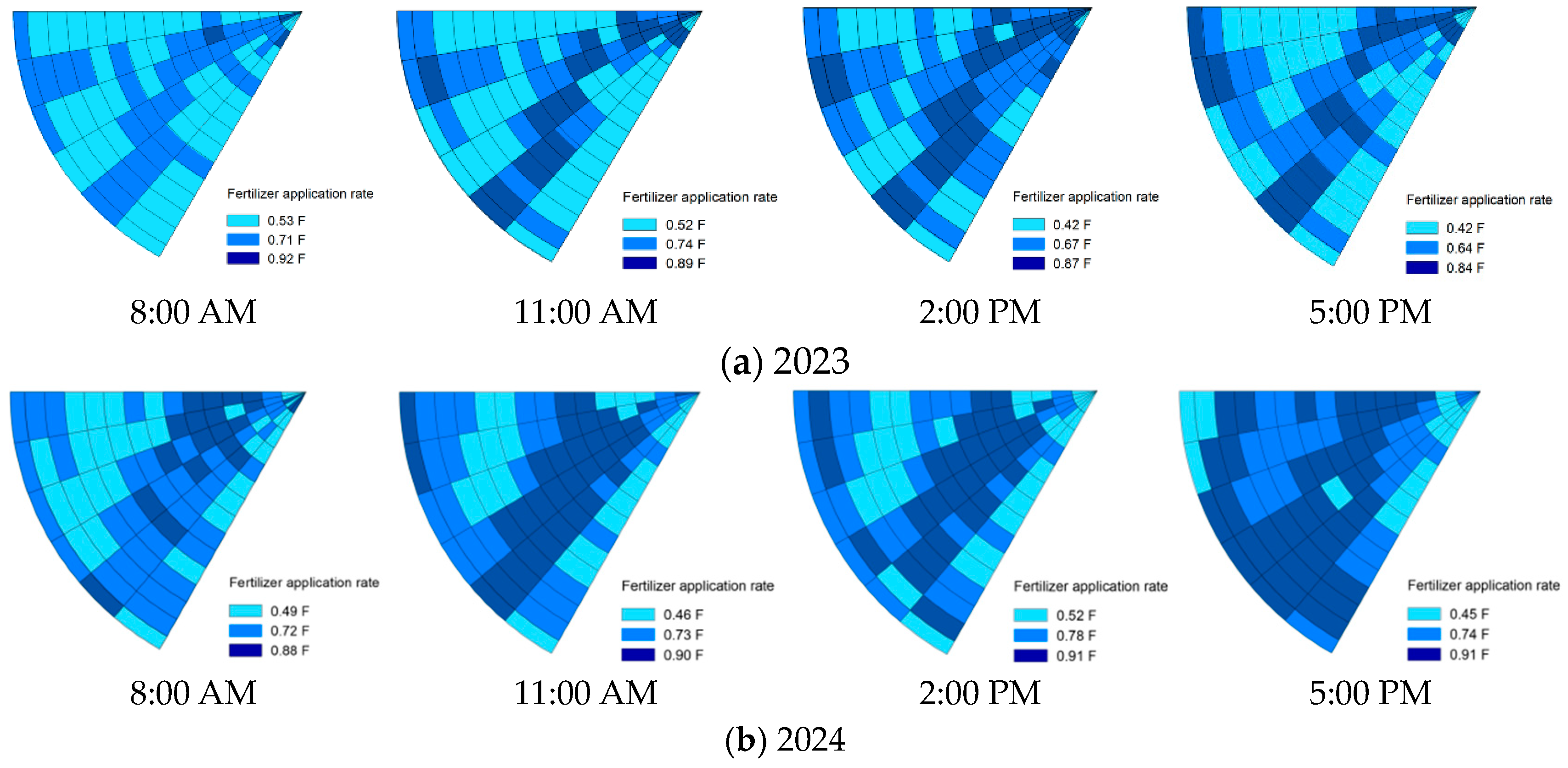 3.3. The Effect of Flight Time on VRN Prescription Maps