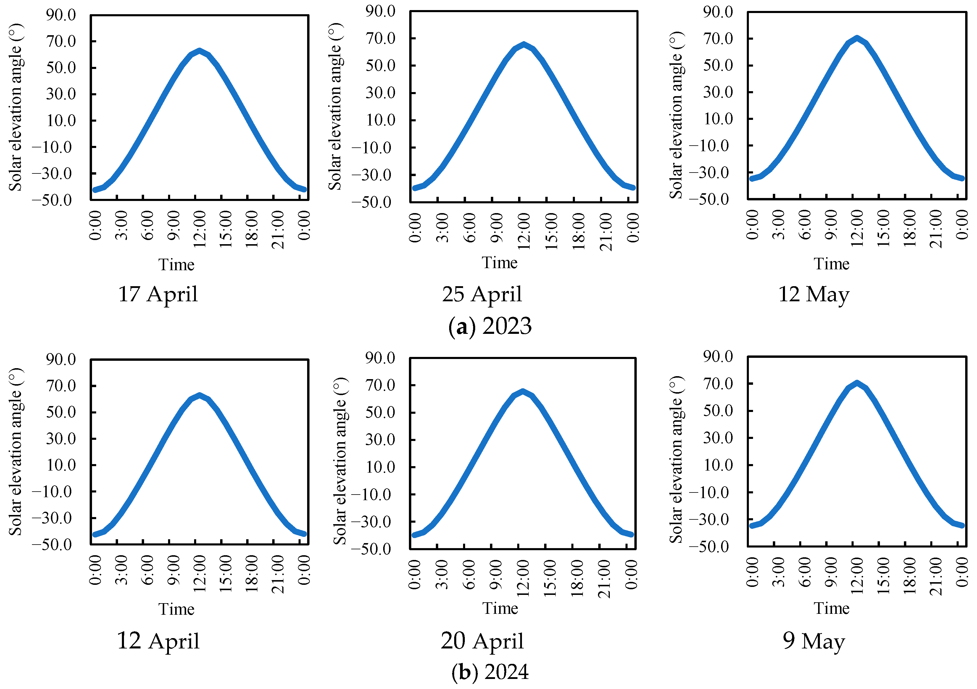 - The flight time significantly influences the VRN prescription maps. The spatial distributions of the vegetation index and VRN prescription patterns showed minimal discrepancies during periods with solar elevation angles greater than 50°, which corresponded to 11:00 a.m.–2:00 p.m. local time. Under these conditions, the overlap percentage between prescription maps exceeded 80%. Our study recommended the use of a UAV multi-spectral system (DJI Phantom 4 Multi-spectral) at solar elevation angles greater than 50° to generate VRN prescription maps of winter wheat.