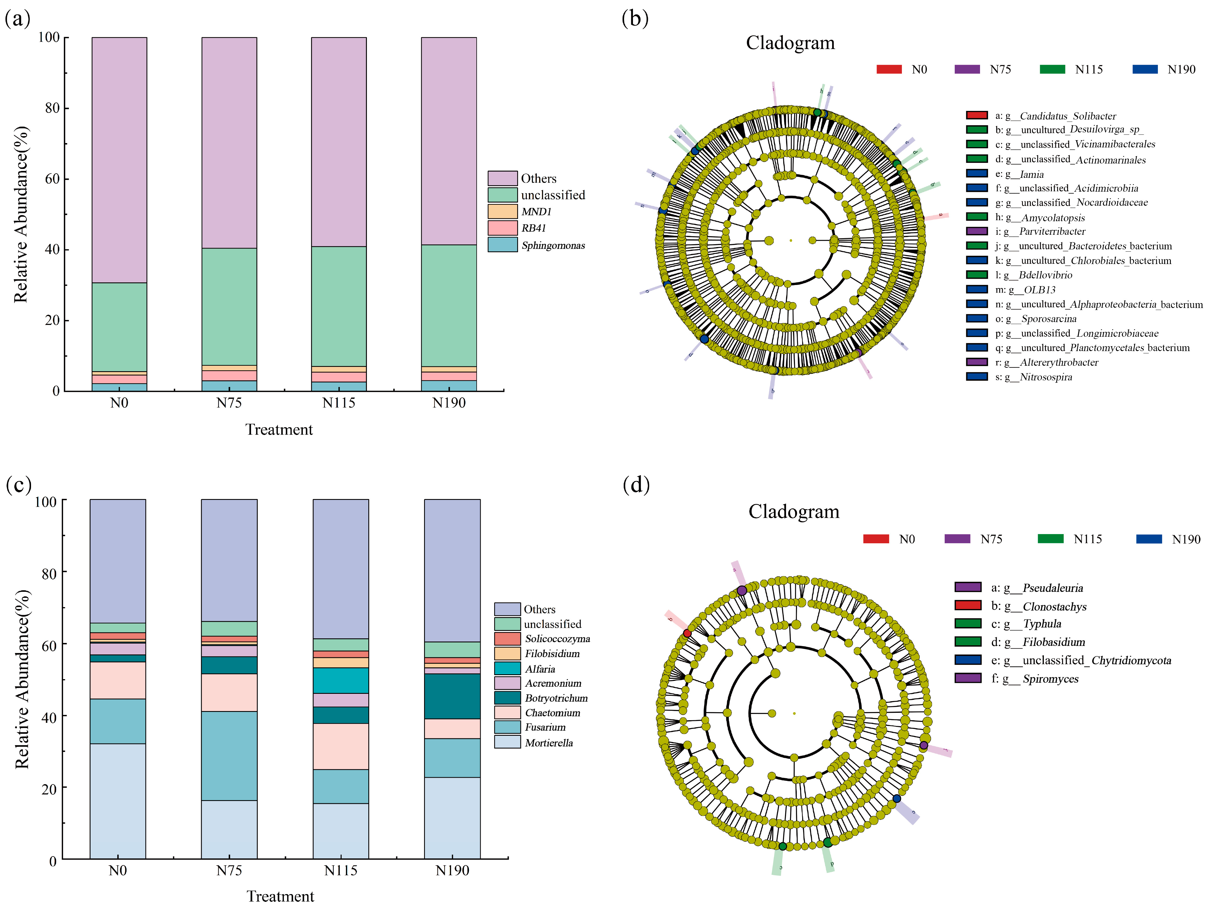 3.3. Effects of Different N Addition Rates on Microbial Community Structure