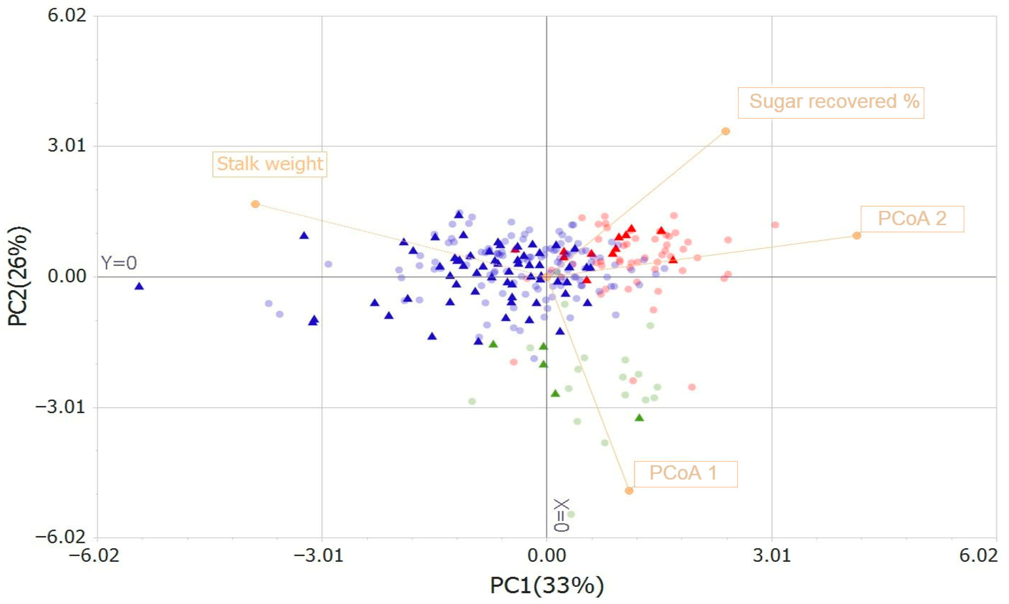 - Perera, M.F.; Peña Malavera, A.N.; Noguera, A.S.; Racedo, J.; Ostengo, S. Sugarcane genetic diversity study of EEAOC´s germplasm bank and assessment of a core collection. In Proceedings of the ISSCT XXXII Centennial Congress 2025, Cali, Colombia, 24–28 August 2025; Volume 32, pp. 180–186. [Google Scholar]