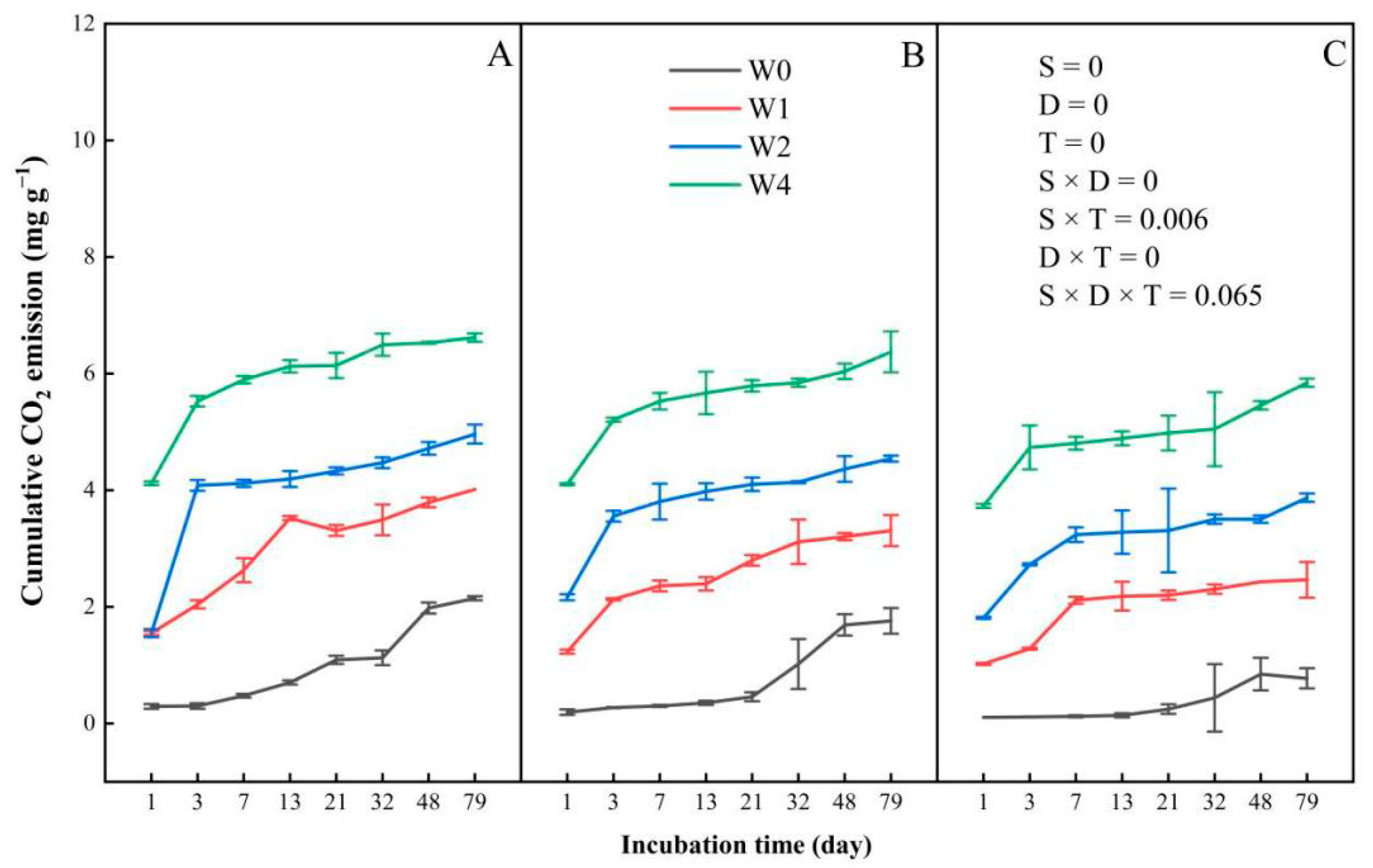 4.1. Effects of Straw Addition on Carbon Dioxide Emission