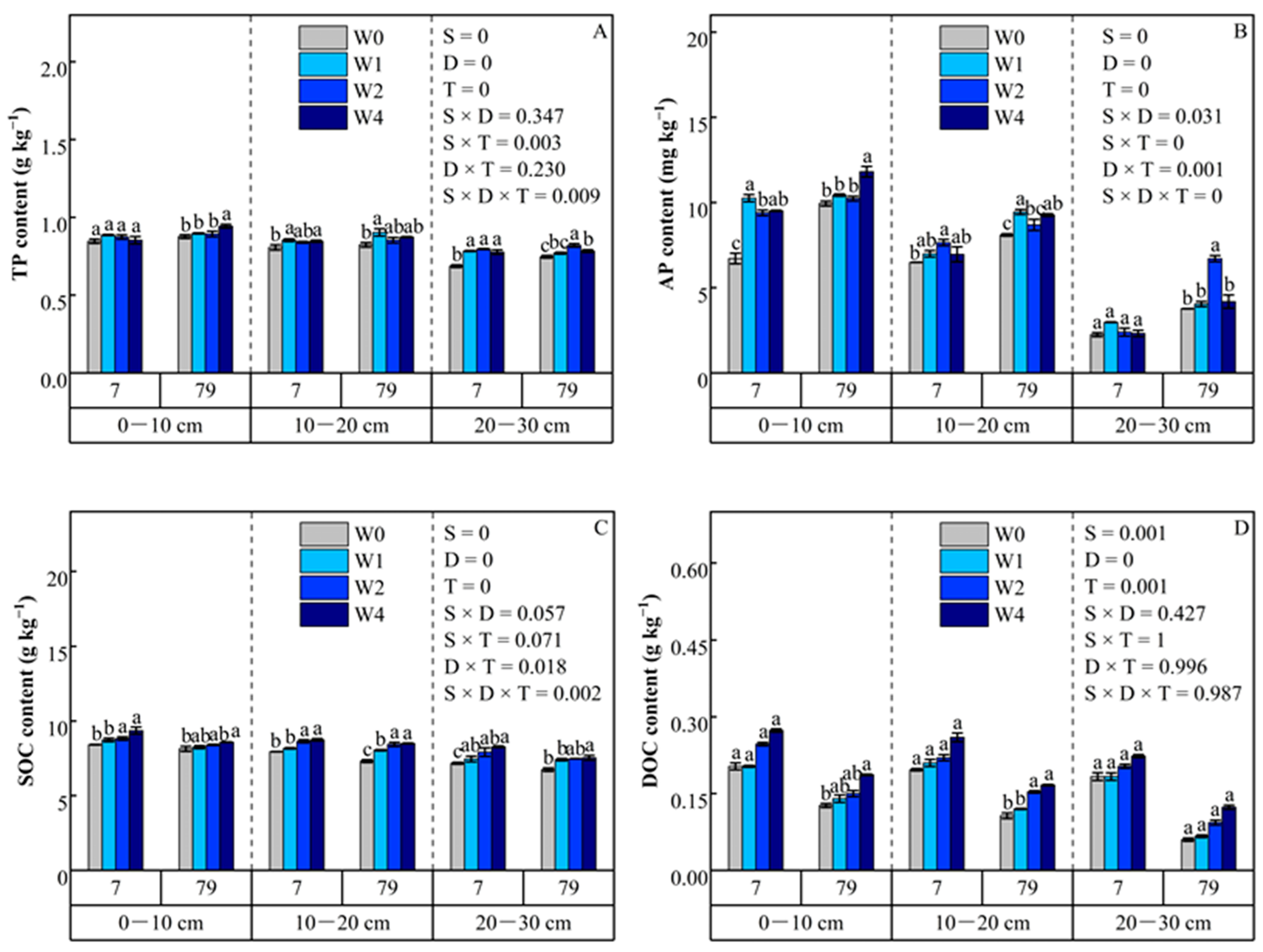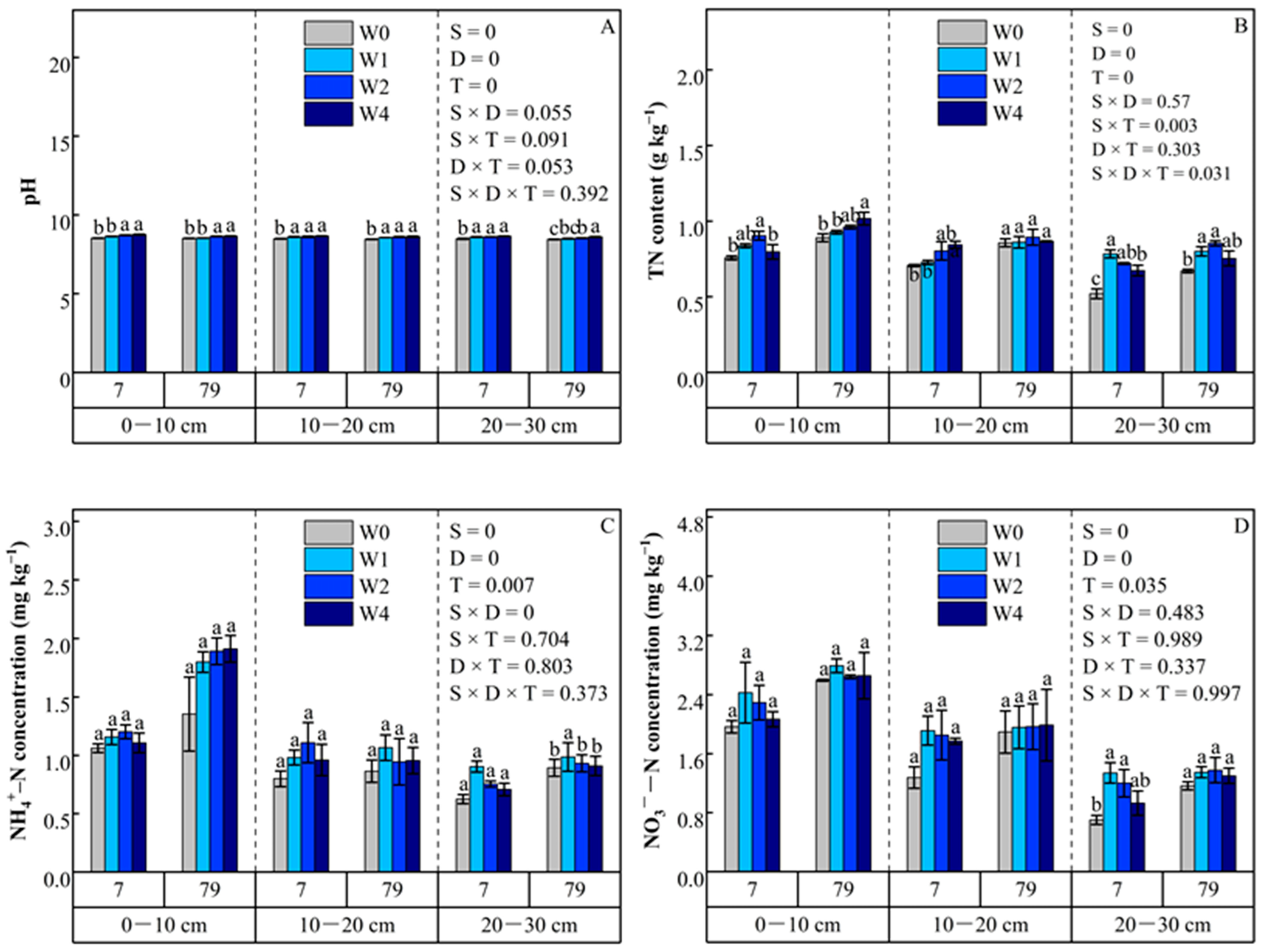 | Traditional tillage with straw return | Control (W0) | 0 | 0–10 cm, 10–20 cm, and 20–30 cm |