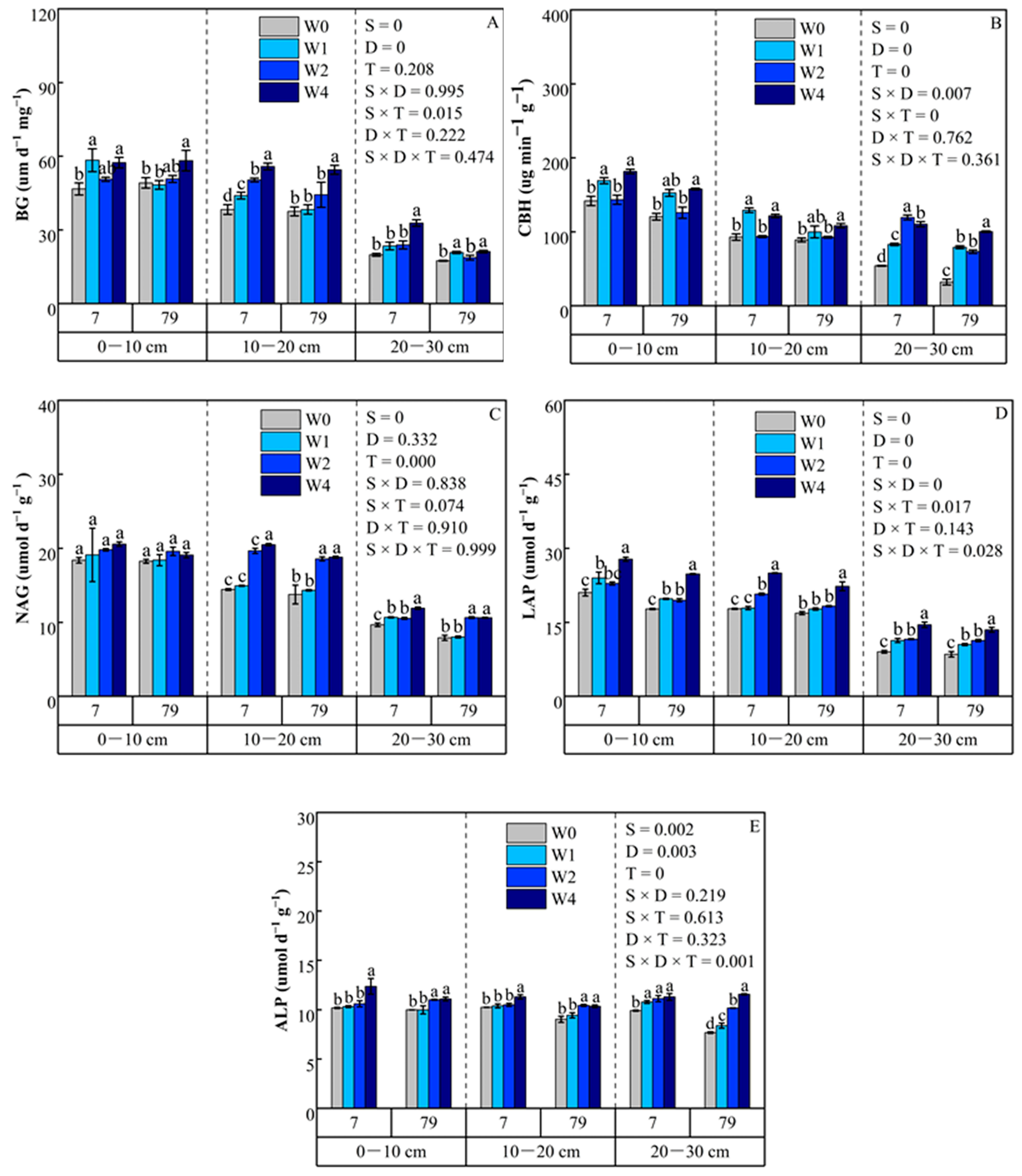 2.5. Soil Extracellular Enzyme Activity