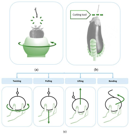 Schematic Diagram of Different Picking Methods. (a) Negative pressure; (b) Cutting; (c) Clamping [65] (open access).