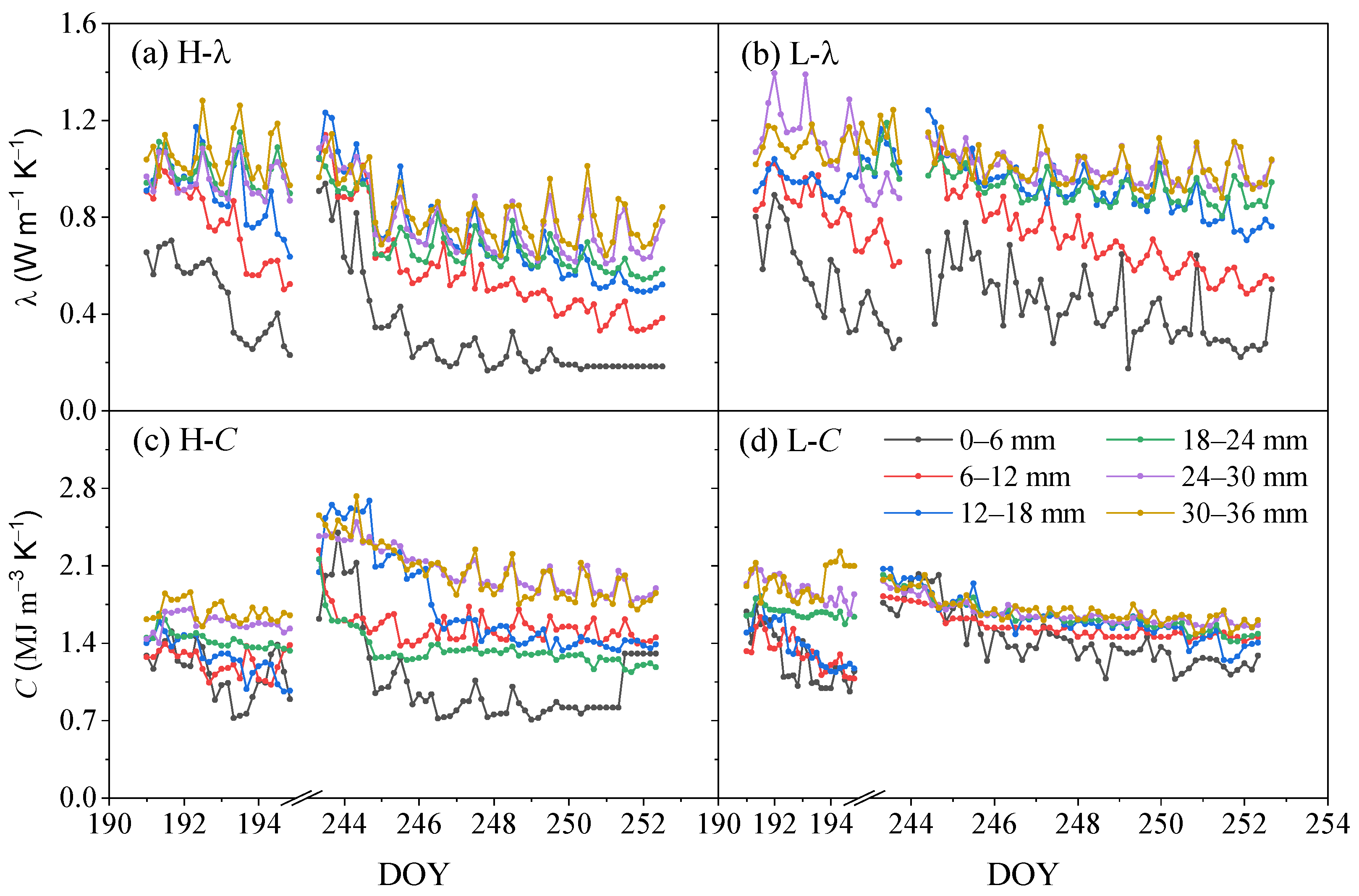 3.2. Dynamics of Soil Thermal Properties