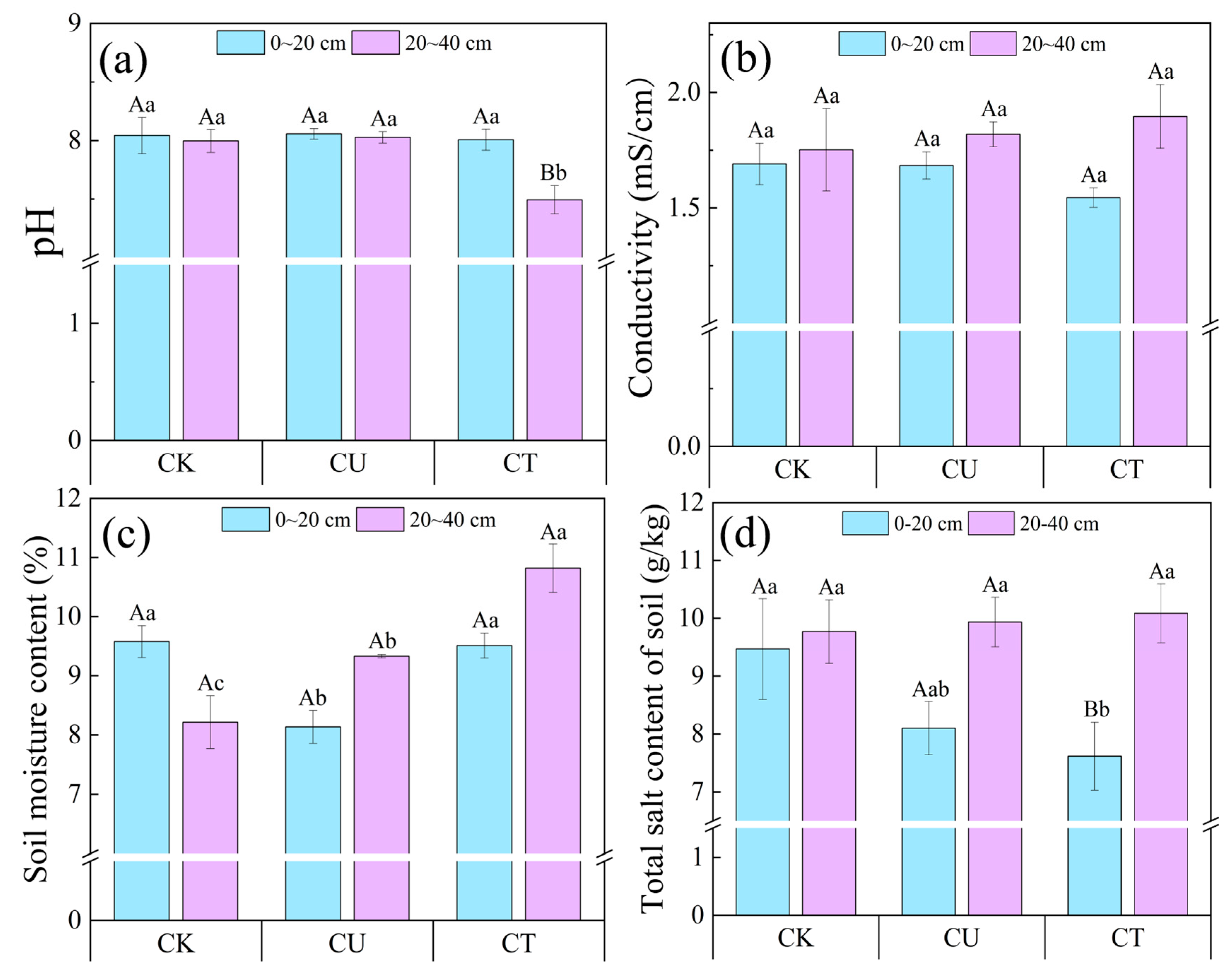 | CK | 7.70 ± 0.09 a | 7.69 ± 0.07 a | 2.37 ± 0.03 a | 2.76 ± 0.06 b | 0.14 ± 0.01 a | 0.44 ± 0.01 a |