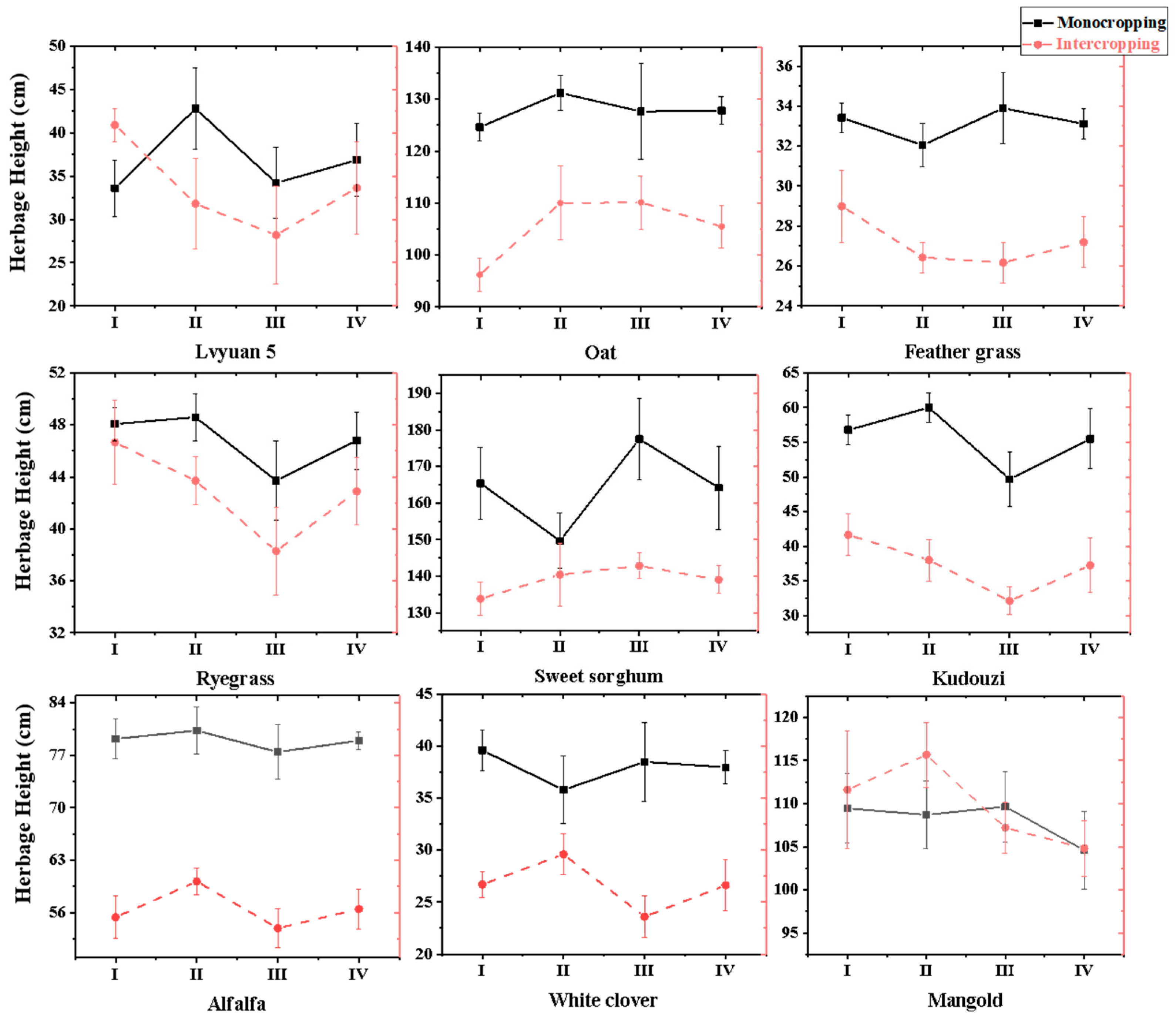 3.3.1. Aboveground Parts of Different Forage Types