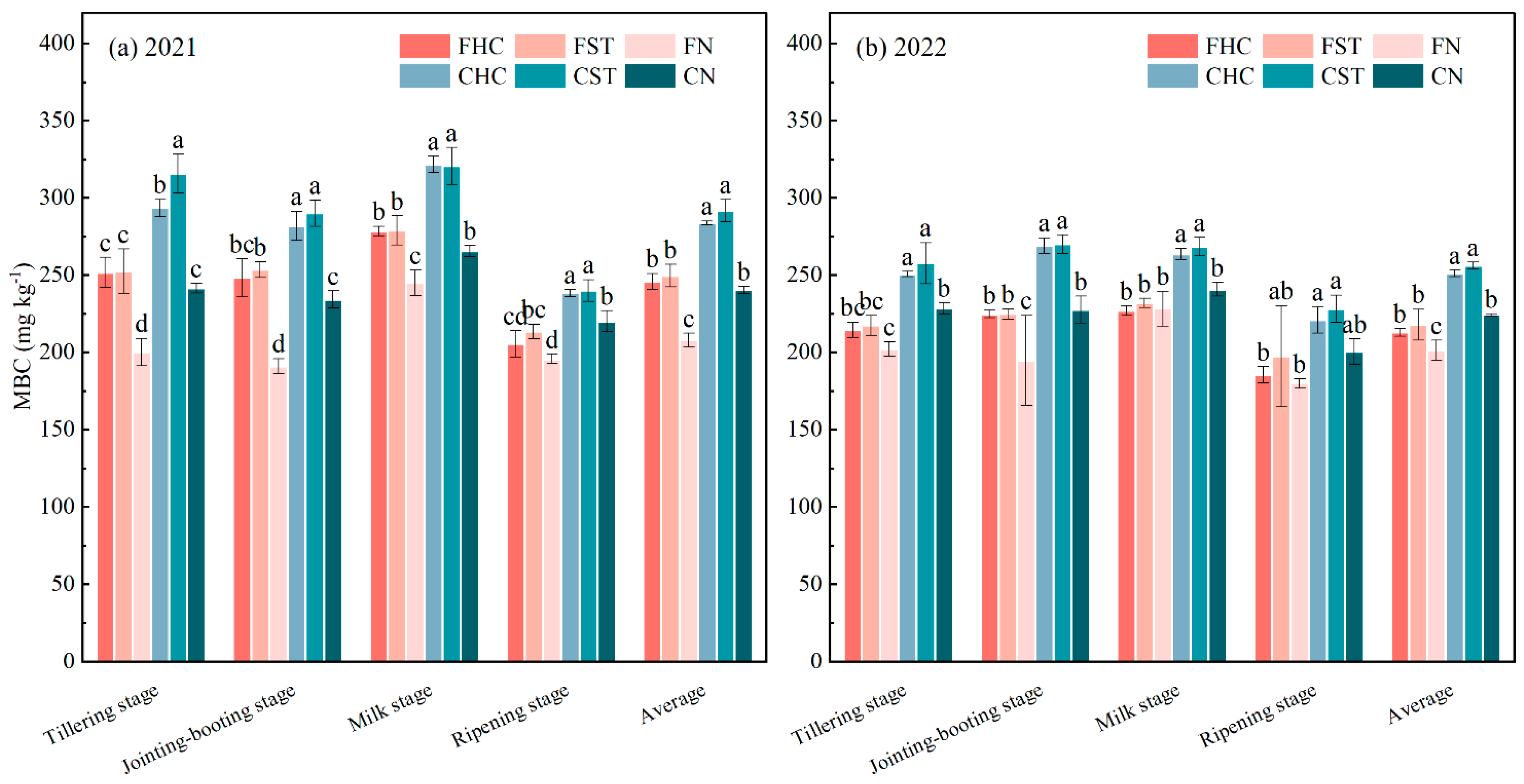 - Chen, P.; Xu, J.Z.; Wang, K.C.; Zhang, Z.X.; Zhou, Z.Q.; Li, Y.W.; Li, T.C.; Nie, T.Z.; Wei, Q.; Liao, L.X. Straw return combined with water-saving irrigation increases microbial necromass accumulation by accelerating microbial growth-turnover in Mollisols of paddy fields. Geoderma 2025, 454, 117211. [Google Scholar] [CrossRef]