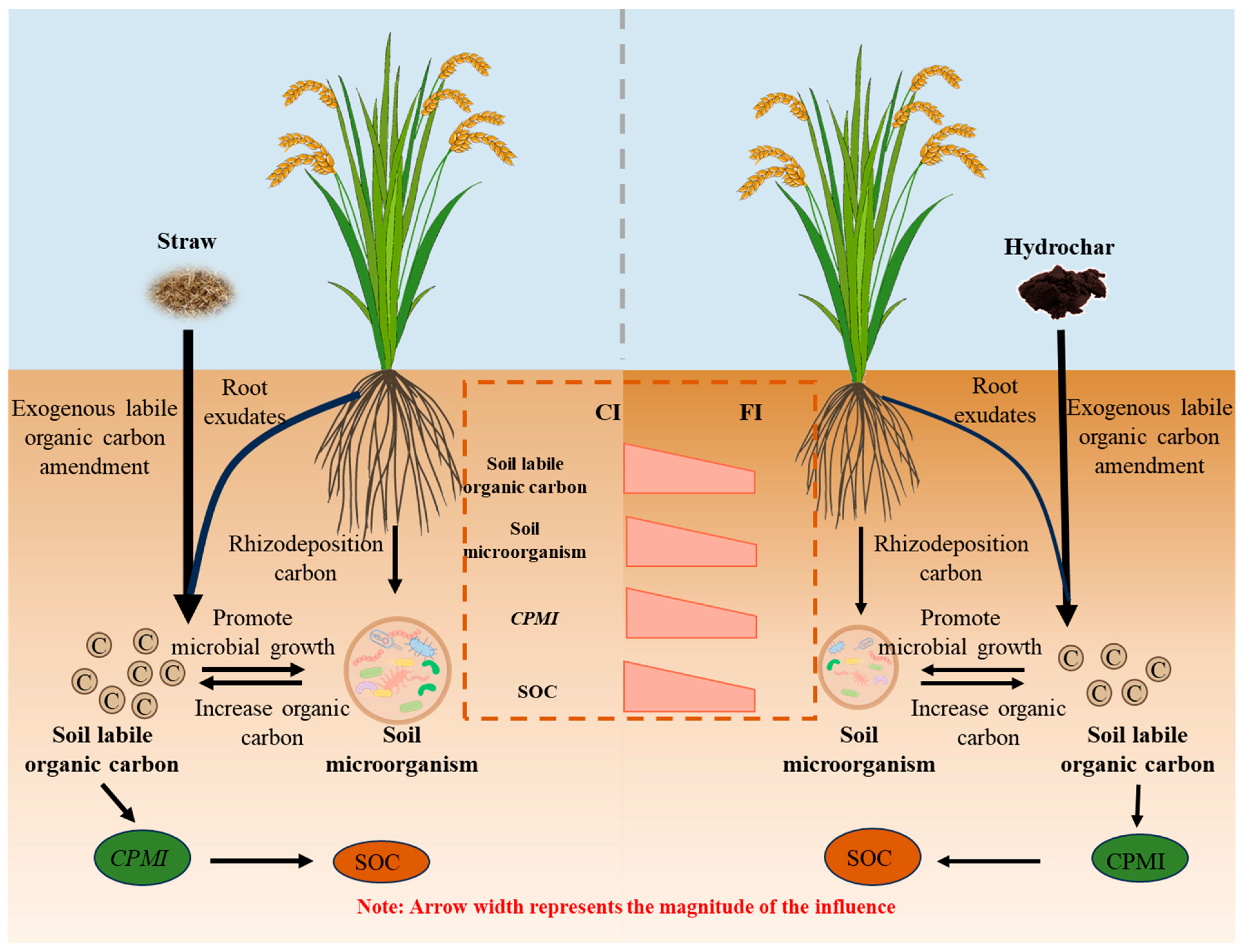 4.2. Residue Recycling Pathways: Contrasting Effects of Straw and Hydrochar on Carbon Dynamics