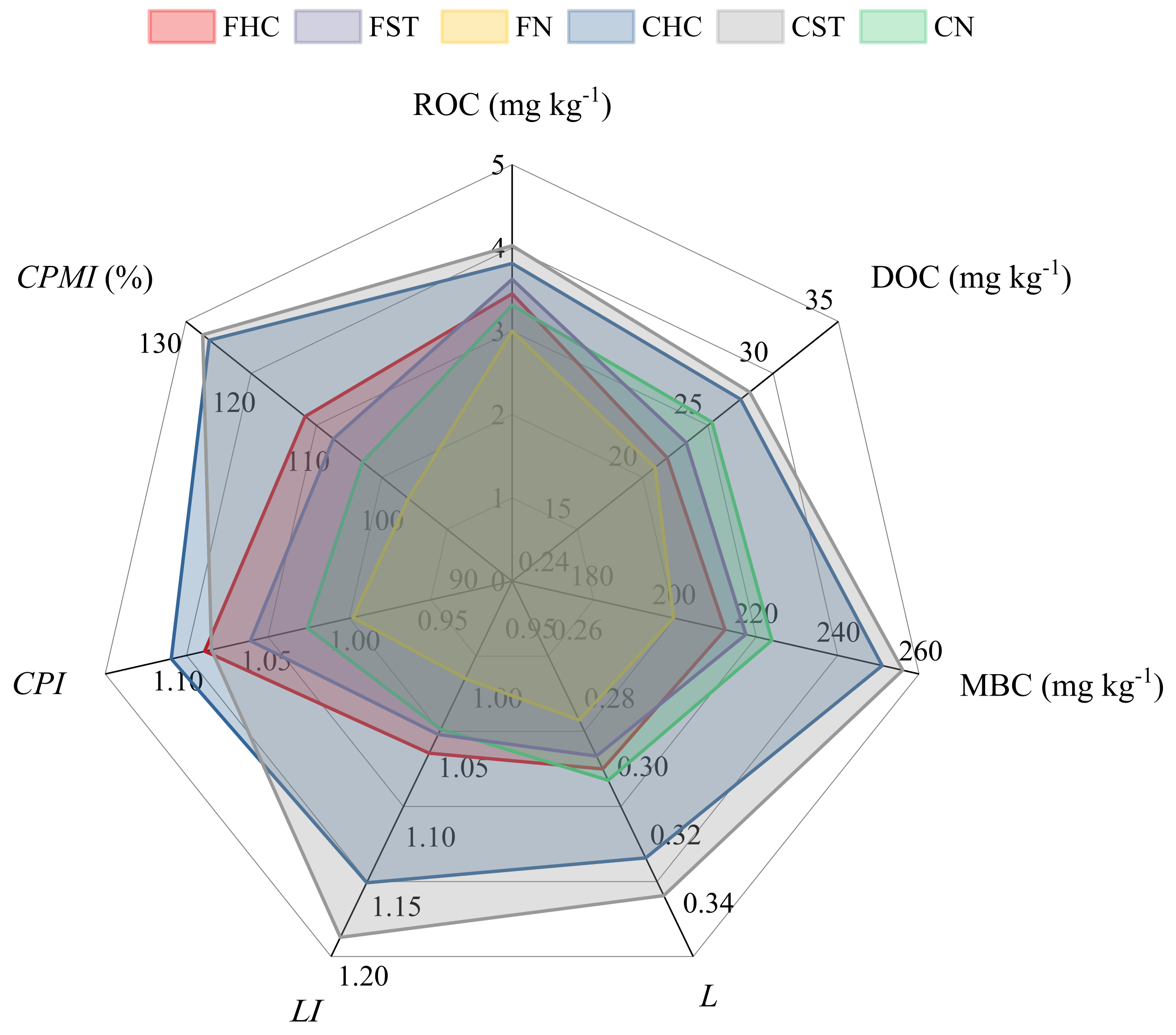| Treatment | SOC (g kg−1) | L | LI | CPI | CPMI (%) |