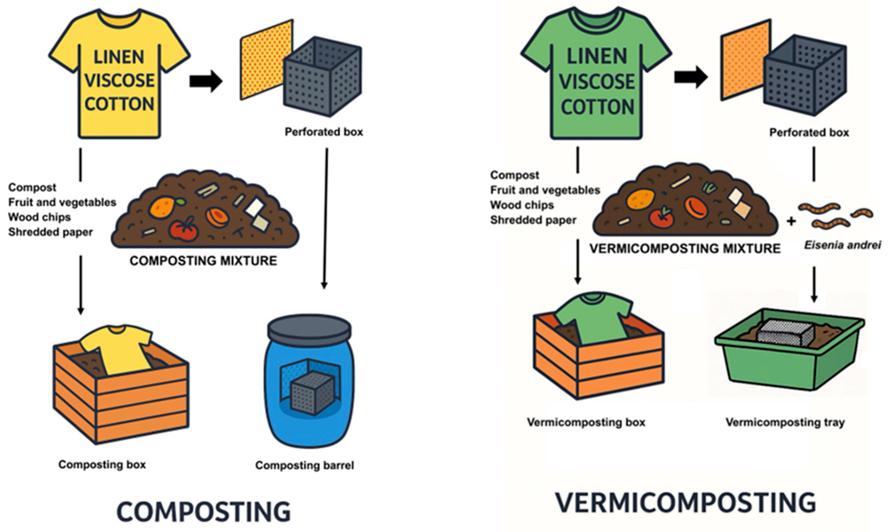 In substrates containing cotton fibers, C and N dynamics remained stable throughout the composting and vermicomposting processes (