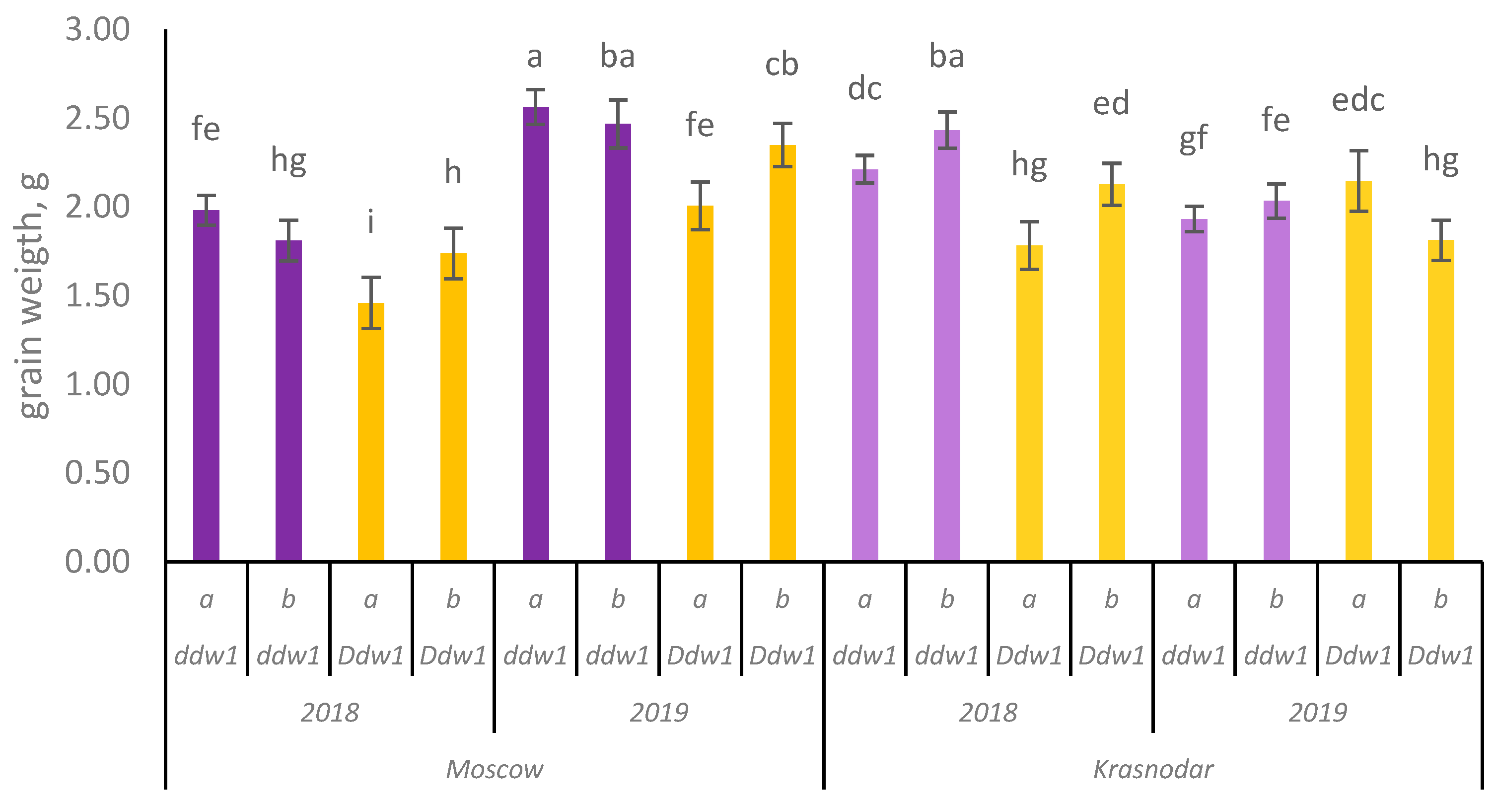 3.3.1. Effects of the Ddw1 Gene
