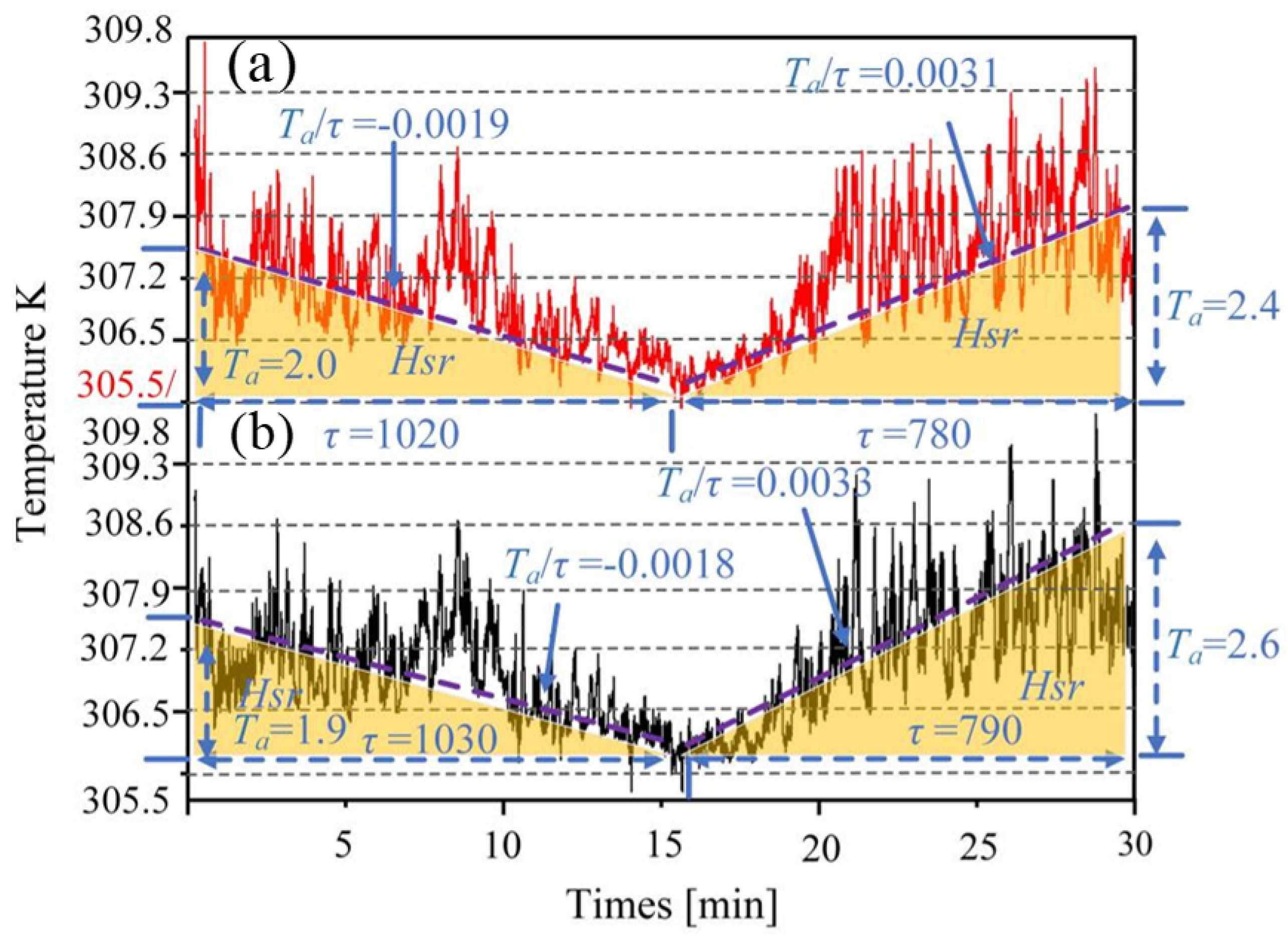 3.3. Analysis of High-Frequency Temperature Results from Actual and Simulated Data at Large Time Scales Under the Large Eddy Simulation