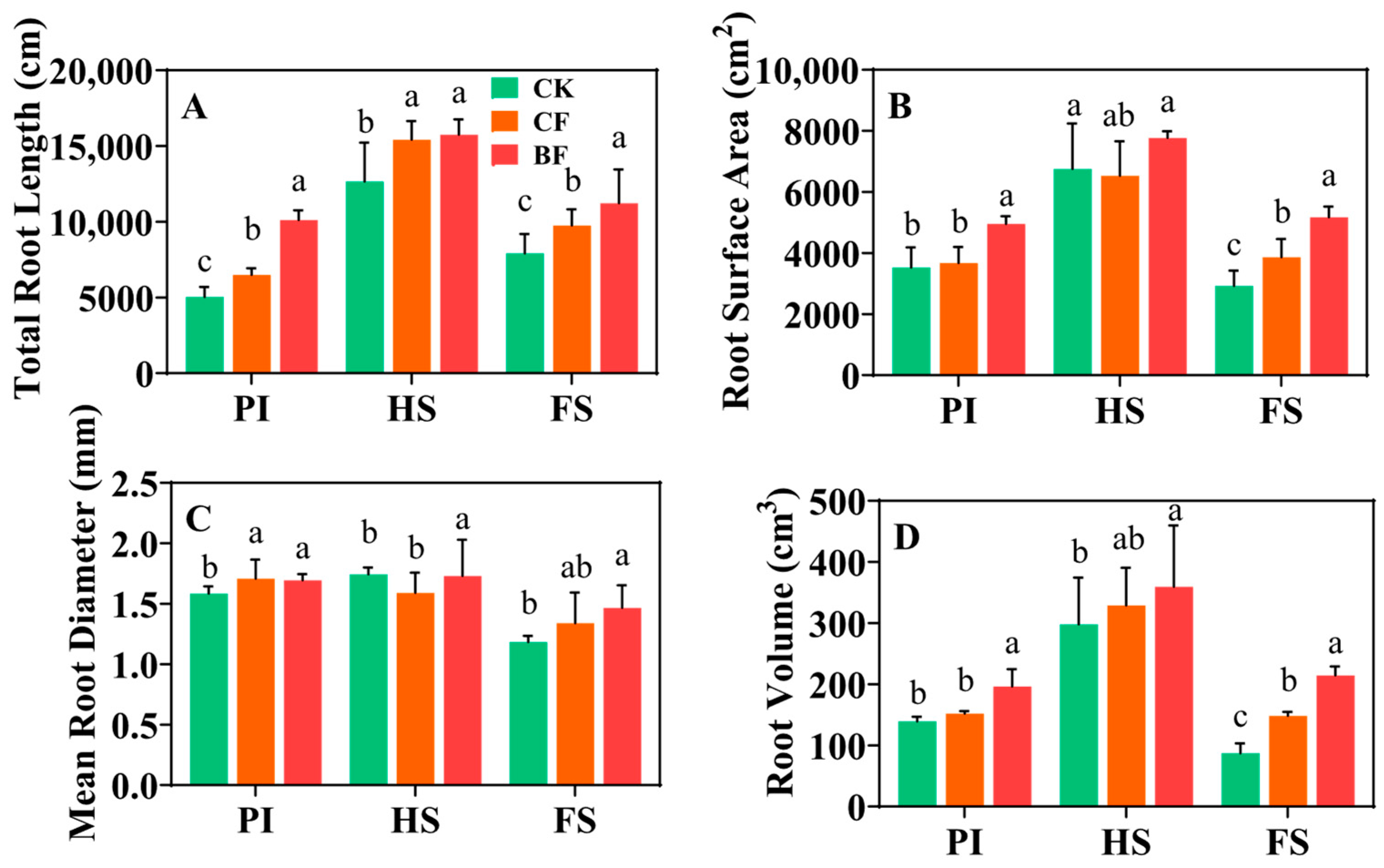- Feng, W.H.; Sánchez-Rodríguez, A.R.; Bilyera, N.; Wang, J.Q.; Wang, X.Q.; Han, Y.H.; Ma, B.X.; Zhang, H.Y.; Li, F.; Zhou, J.; et al. Mechanisms of biochar-based organic fertilizers enhancing maize yield on a Chinese Chernozem: Root traits, soil quality and soil microorganisms. Environ. Technol. Innov. 2024, 36, 103756. [Google Scholar] [CrossRef]