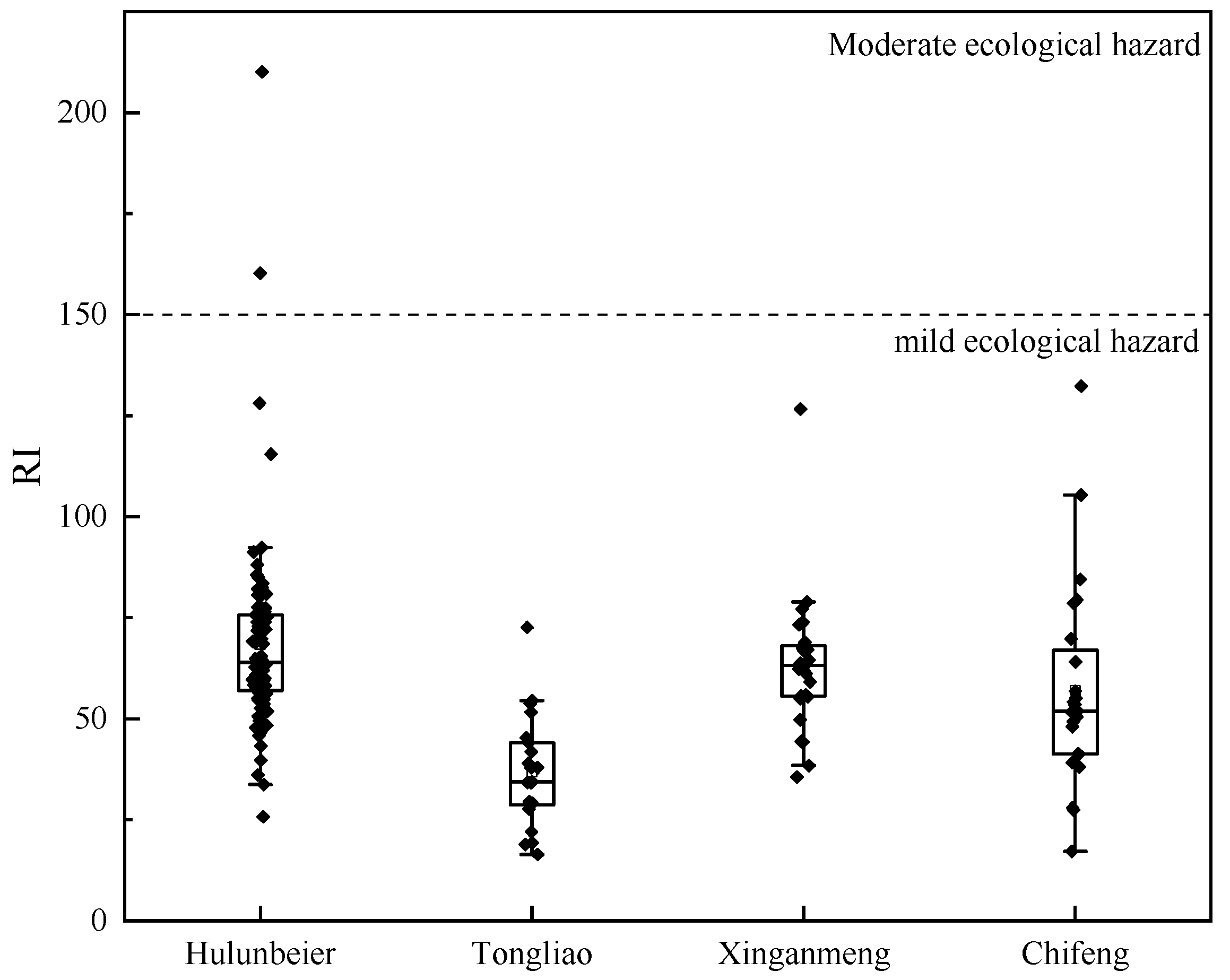 Recently, studies have begun to address heavy metal pollution in the Inner Mongolia black soil region. For instance, Zerizghi et al. assessed ecological and health risks around coal mining areas, while Xie et al. comprehensively evaluated the ecological risk of heavy metals around a typical lead (Pb) and zinc (Zn) mining area in eastern Inner Mongolia Autonomous Region [