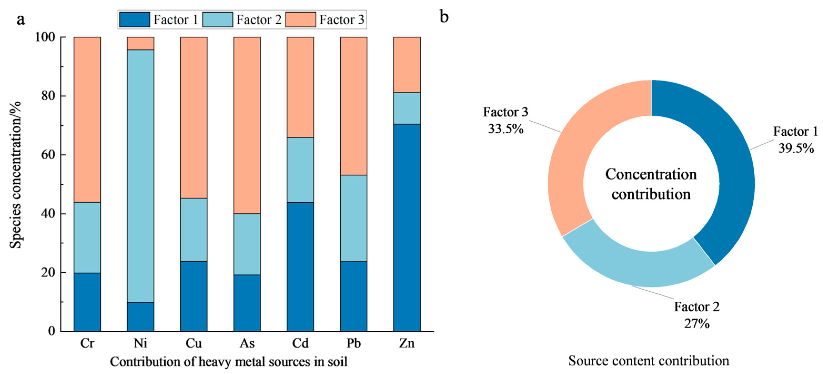 11]. The PMF model, an improved receptor model based on traditional factor analysis, is capable of providing non-negative source contributions based on chemical compositions and has become one of the dominant methods for determining the number of soil heavy metal contamination sources and the contribution of each source to heavy metal elements [