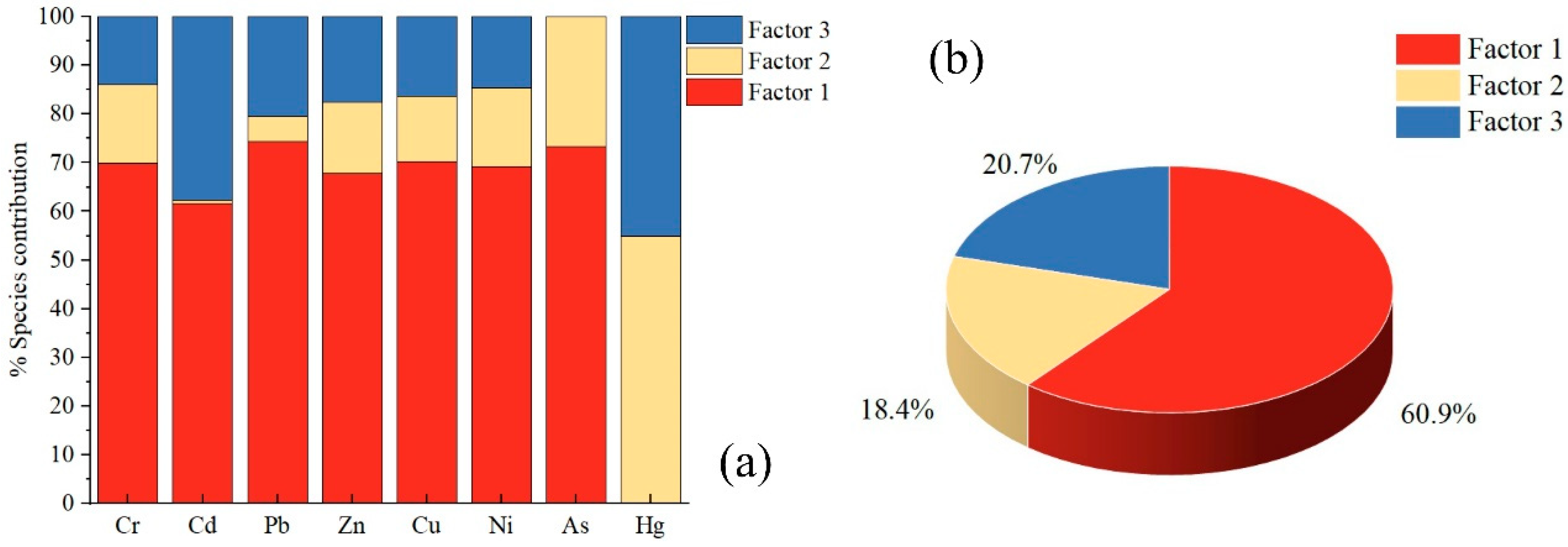 - Liu, Z.P.; Wang, L.; Yan, M.J.; Ma, B.; Cao, R.X. Source apportionment of soil heavy metals based on multivariate statistical analysis and the PMF model: A case study of the Nanyang Basin, China. Environ. Technol. Innov. 2024, 33, 103537. [Google Scholar] [CrossRef]