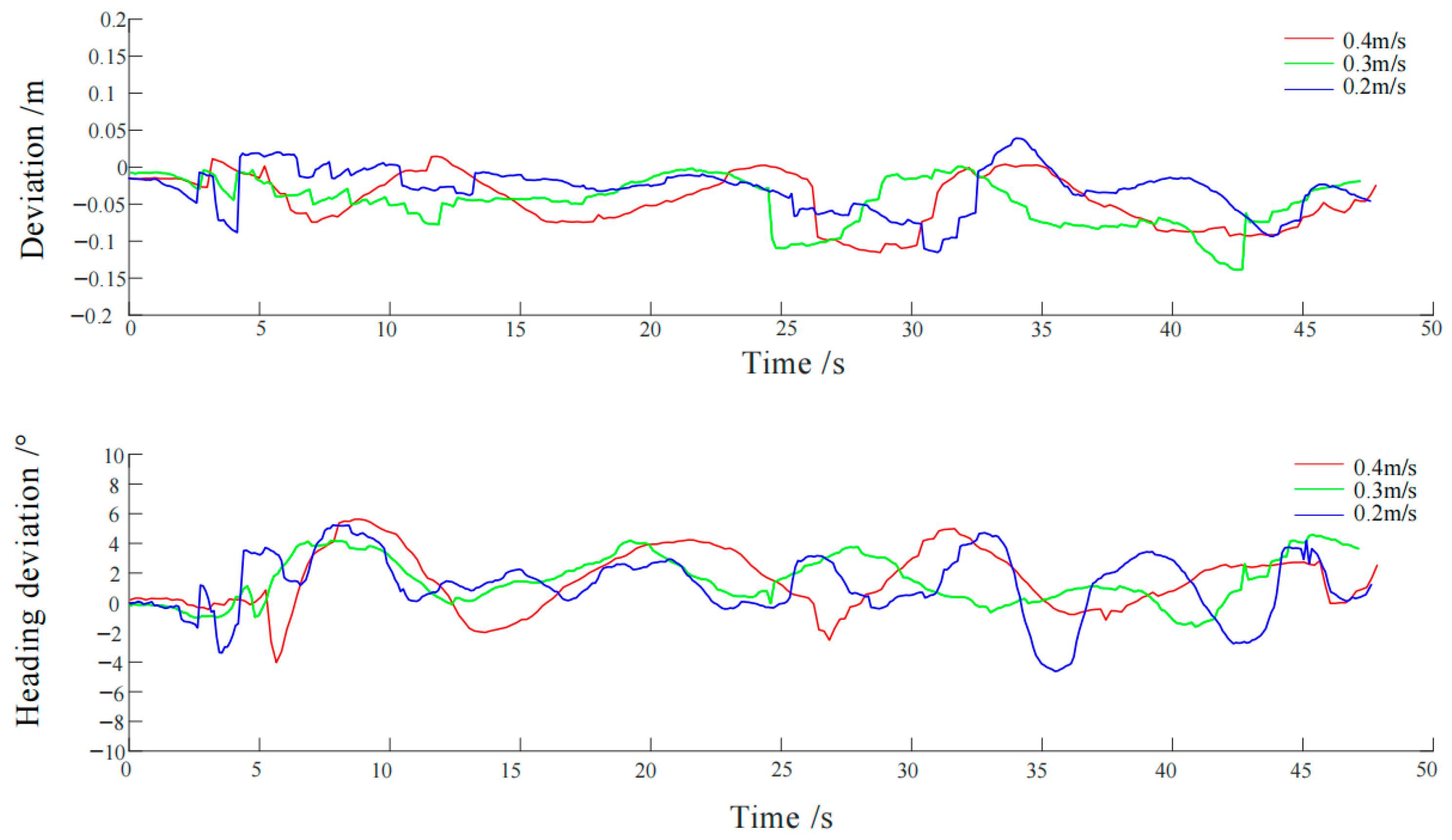 | Speed/ms | Exp | Deviation in X Direction (m) | Heading Deviation (°) | ||||