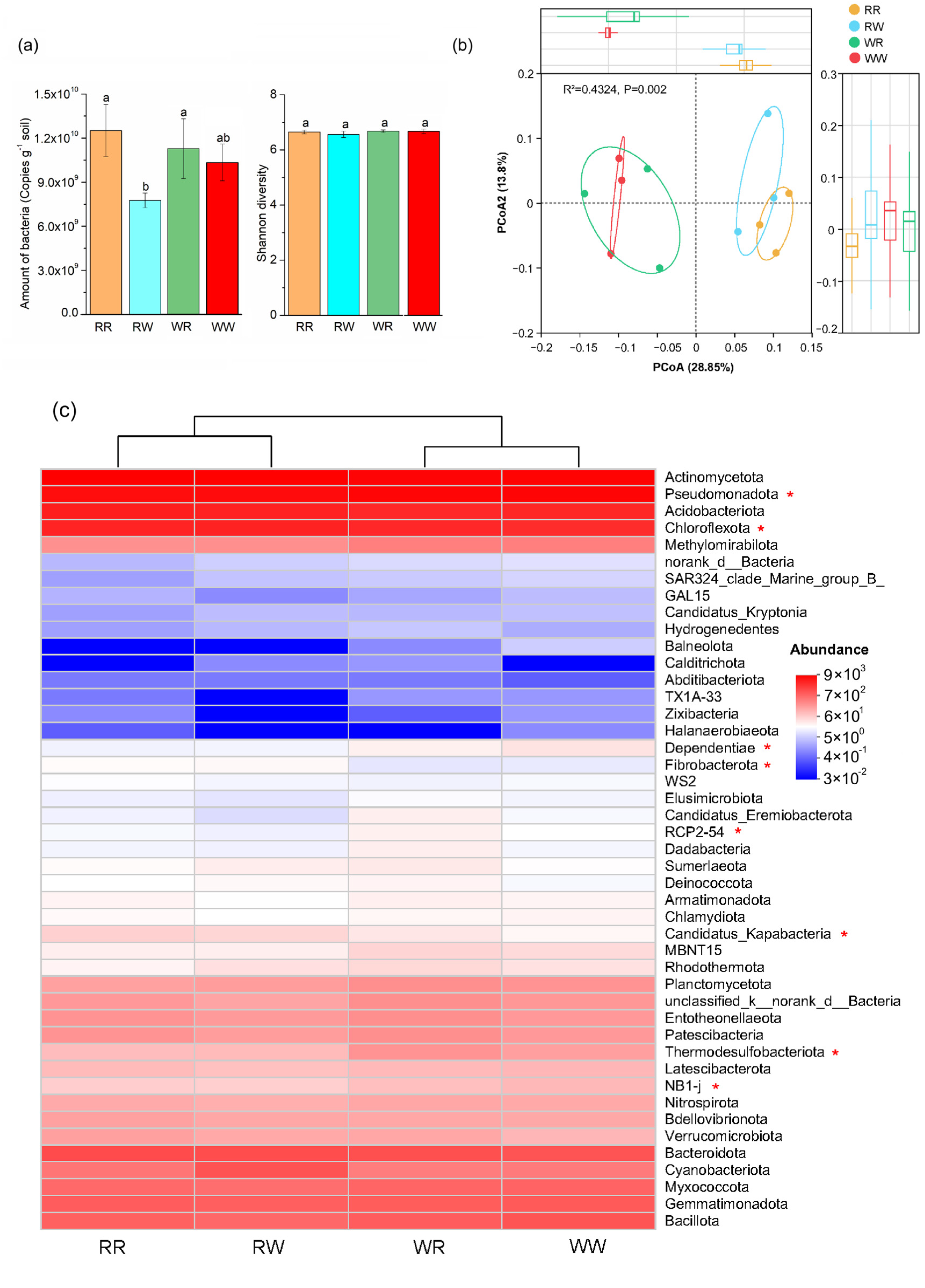 3.2. Effect of Irrigation Regimes on Bacterial Numbers, Diversity, and Community Structure