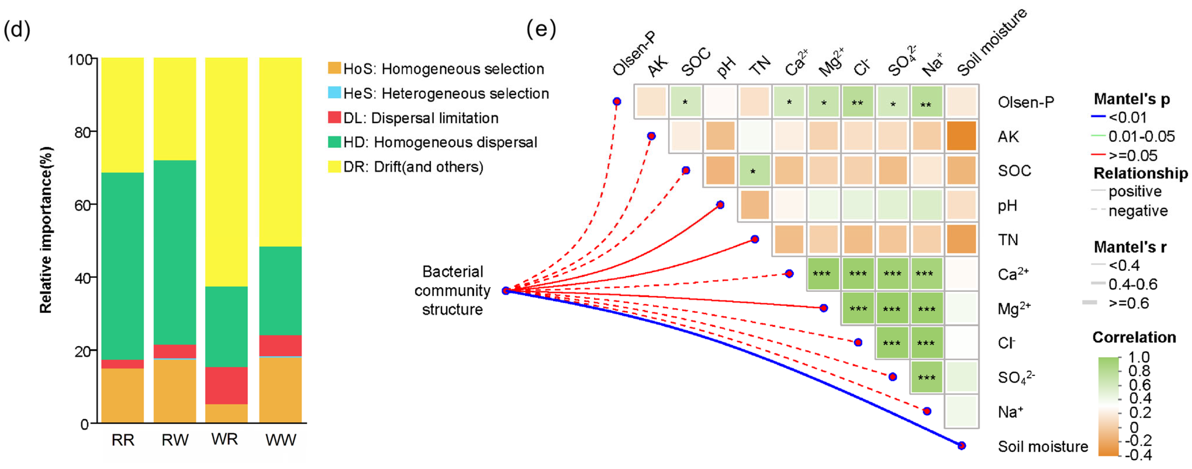 - Zhang, X.C.; Zhai, H.L.; Xu, H.Y.; Song, W.Z.; Liu, M.; Dong, X.F.; Sun, W.; Ma, J.Y. Different salt stress types regulated rhizosphere rare bacterial communities through root exudates and soil physicochemical properties. Plant Soil 2025. ahead of print. [Google Scholar] [CrossRef]