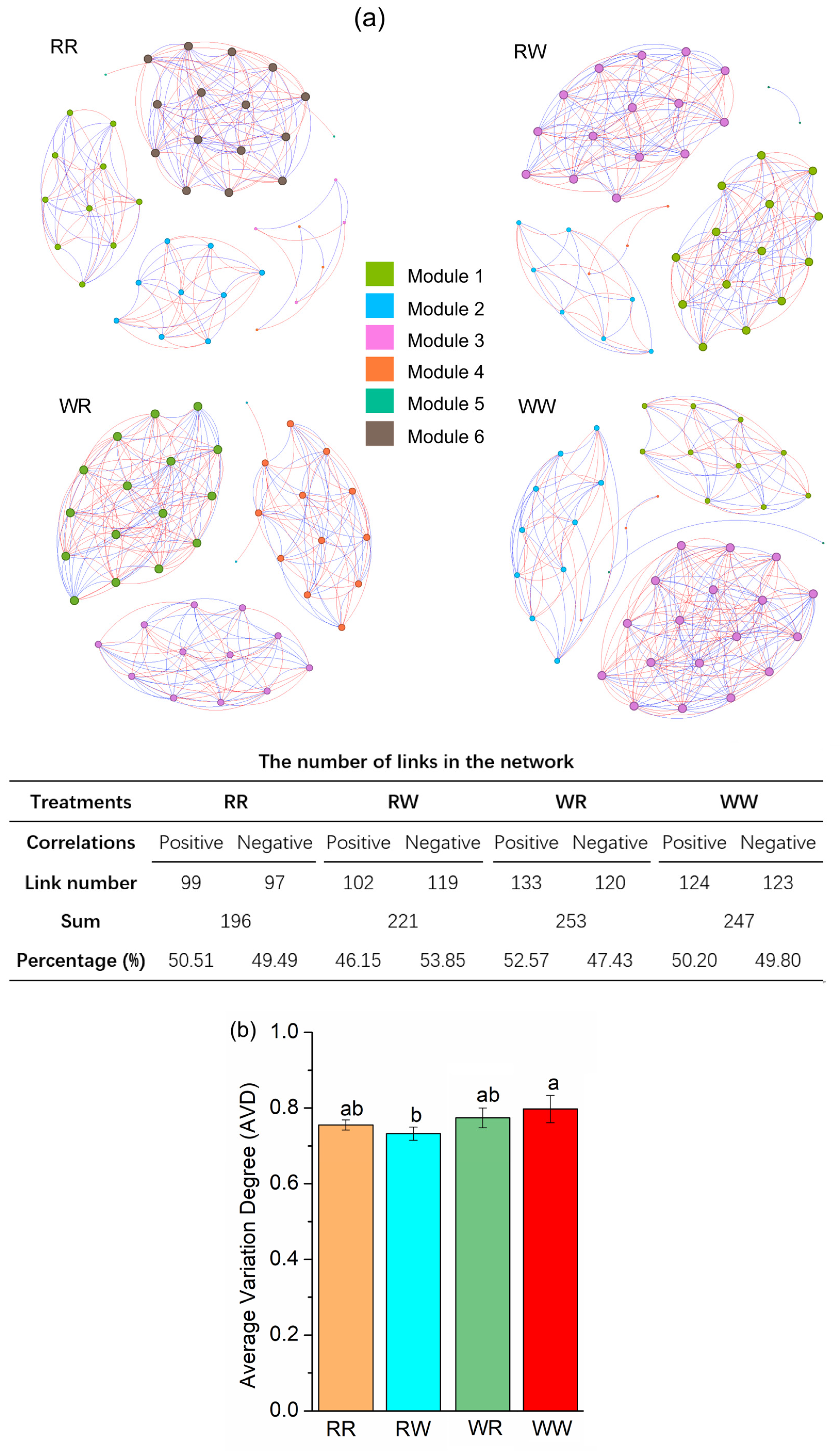 - Fan, K.; Weisenhorn, P.; Gilbert, J.A.; Chu, H. Wheat rhizosphere harbors a less complex and more stable microbial co-occurrence pattern than bulk soil. Soil Biol. Biochem. 2018, 125, 251–260. [Google Scholar] [CrossRef]