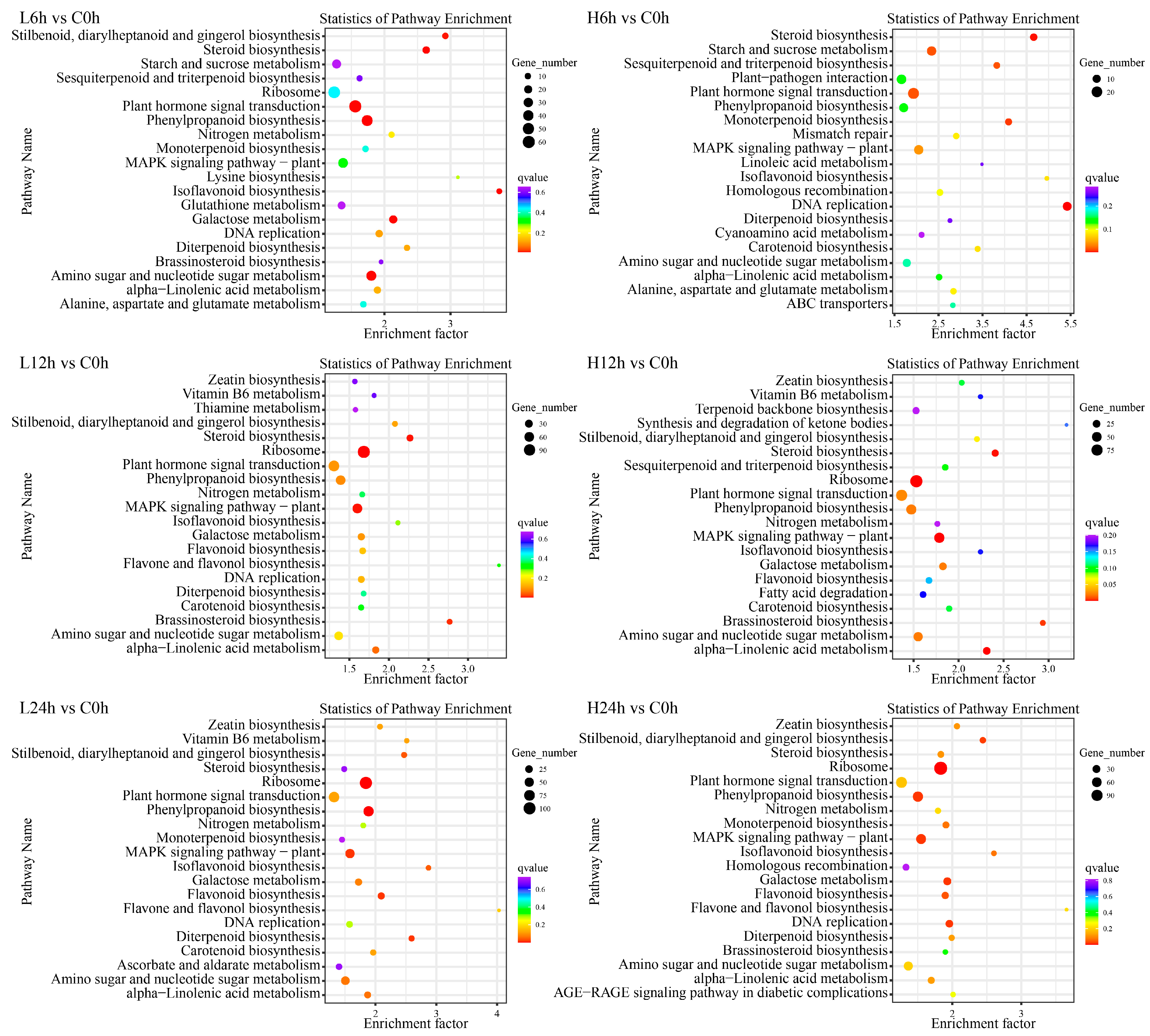 3.2.4. KEGG Enrichment Analysis of DEGs Among Different Treatments