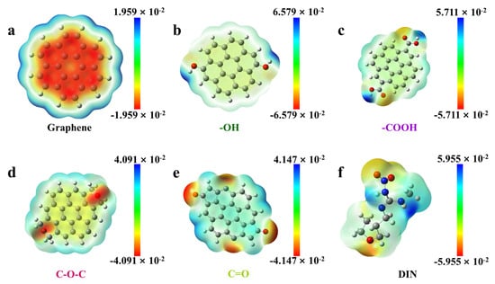 Following geometry optimization, frequency analyses were conducted at the same level of theory to confirm that the optimized structures were true local minima on the potential energy surface (no imaginary frequencies). Subsequently, single-point energy calculations were performed on the optimized geometries to compute the electrostatic potential (ESP). The EP maps were generated and visualized using the Multiwfn 3.8 package based on the calculated electron densities, allowing for a visual and quantitative analysis of the charge distribution and the identification of potential active sites for DIN interaction.