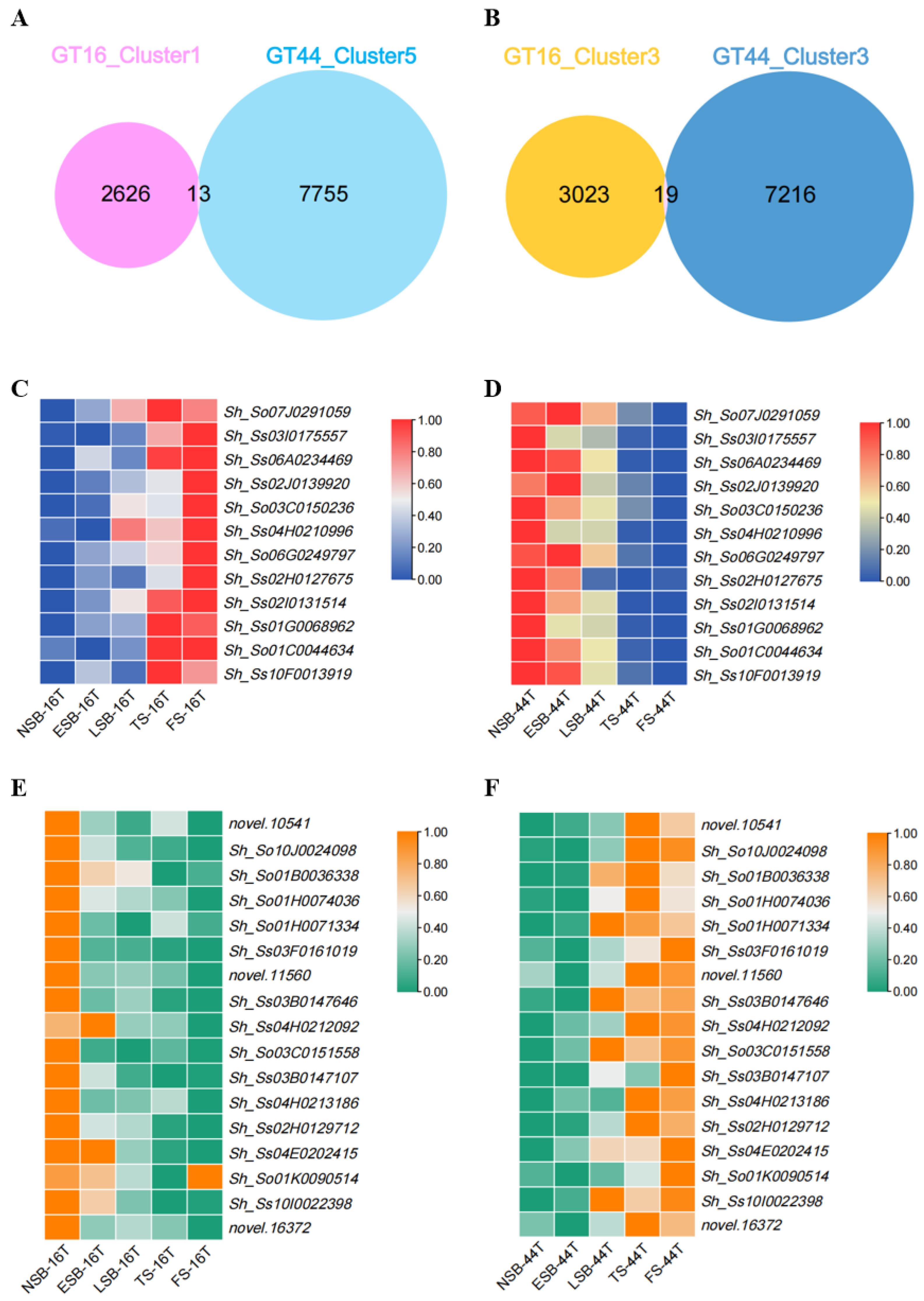 3.2. Comparative Functional Enrichment and Expression Dynamics of DEGs in GT16 and GT44 During Flowering