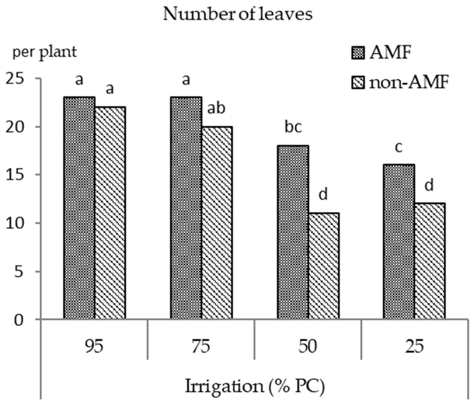 4.3. Effect of AMF on Plant Morphology and Biomass
