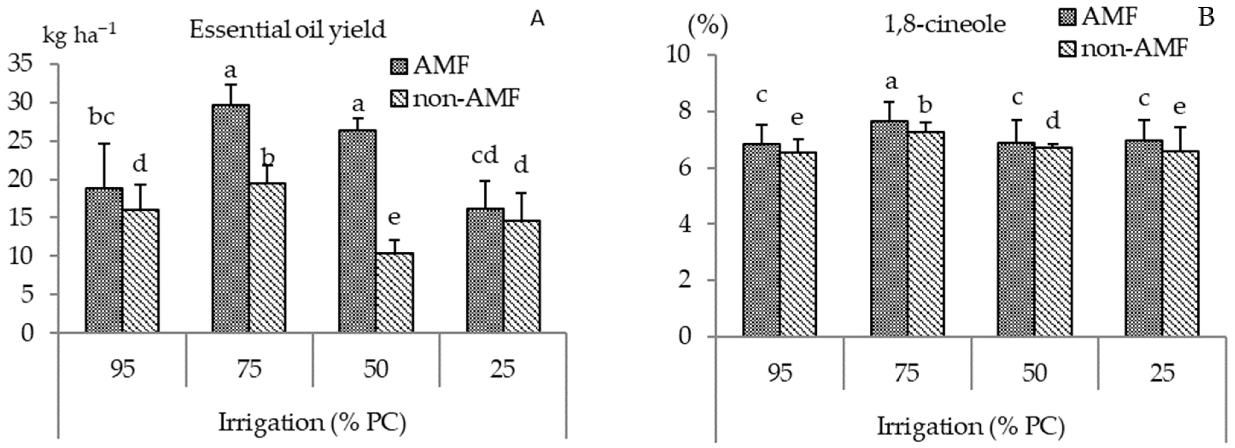 - Pirzad, A.; Mohammdzadeh, S. Water use efficiency of three mycorrhizal Lamiaceae species (Lavandula officinalis, Rosmarinus officinalis and Thymus vulgaris). Agric. Water Manag. 2018, 204, 1–10. [Google Scholar] [CrossRef]