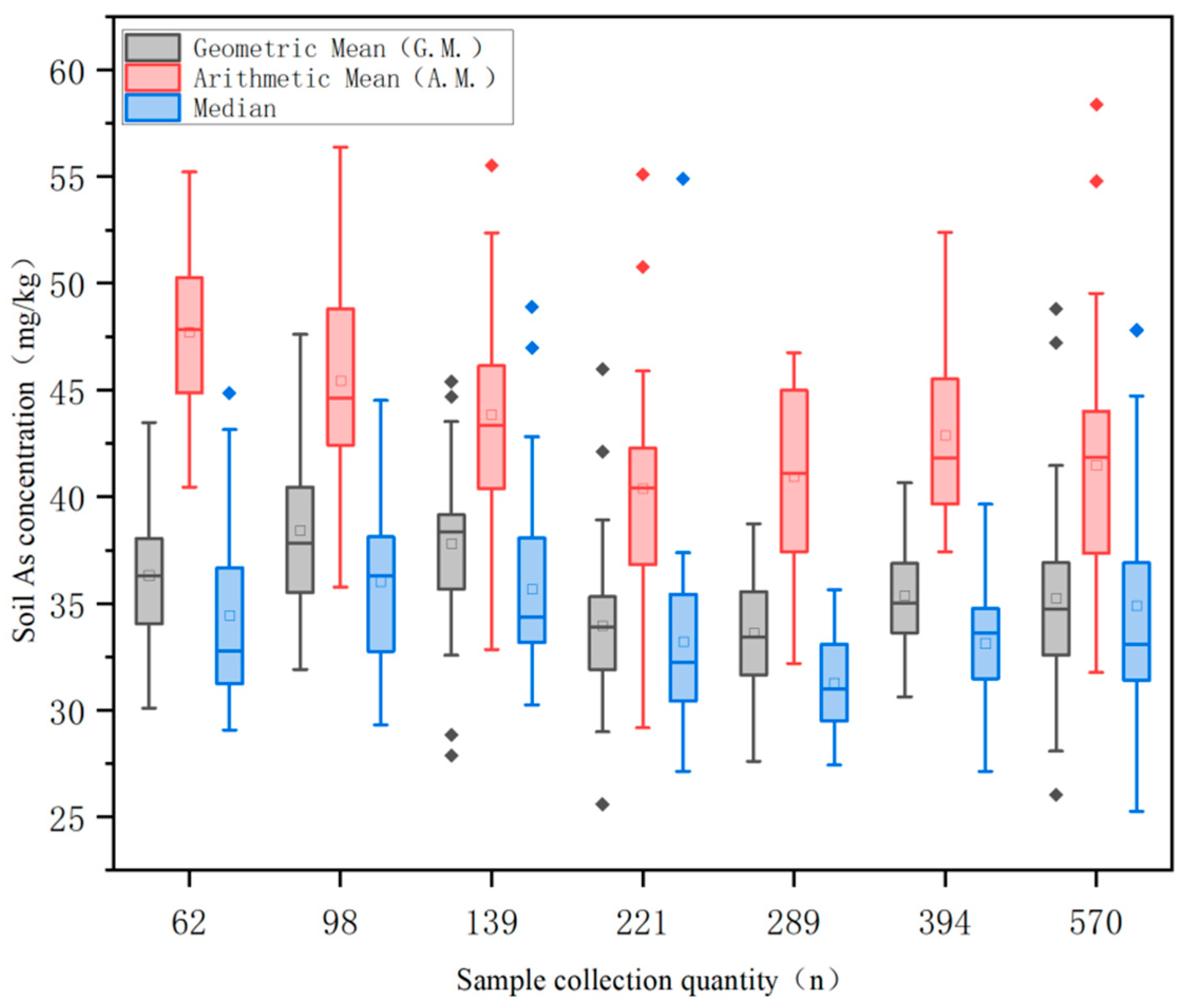 - Compared to arithmetic mean and median analyses, geometric mean evaluation demonstrates lower uncertainty across different sampling densities in ecological environment assessments, averaging 4.3%, and thus provides more accurate results.