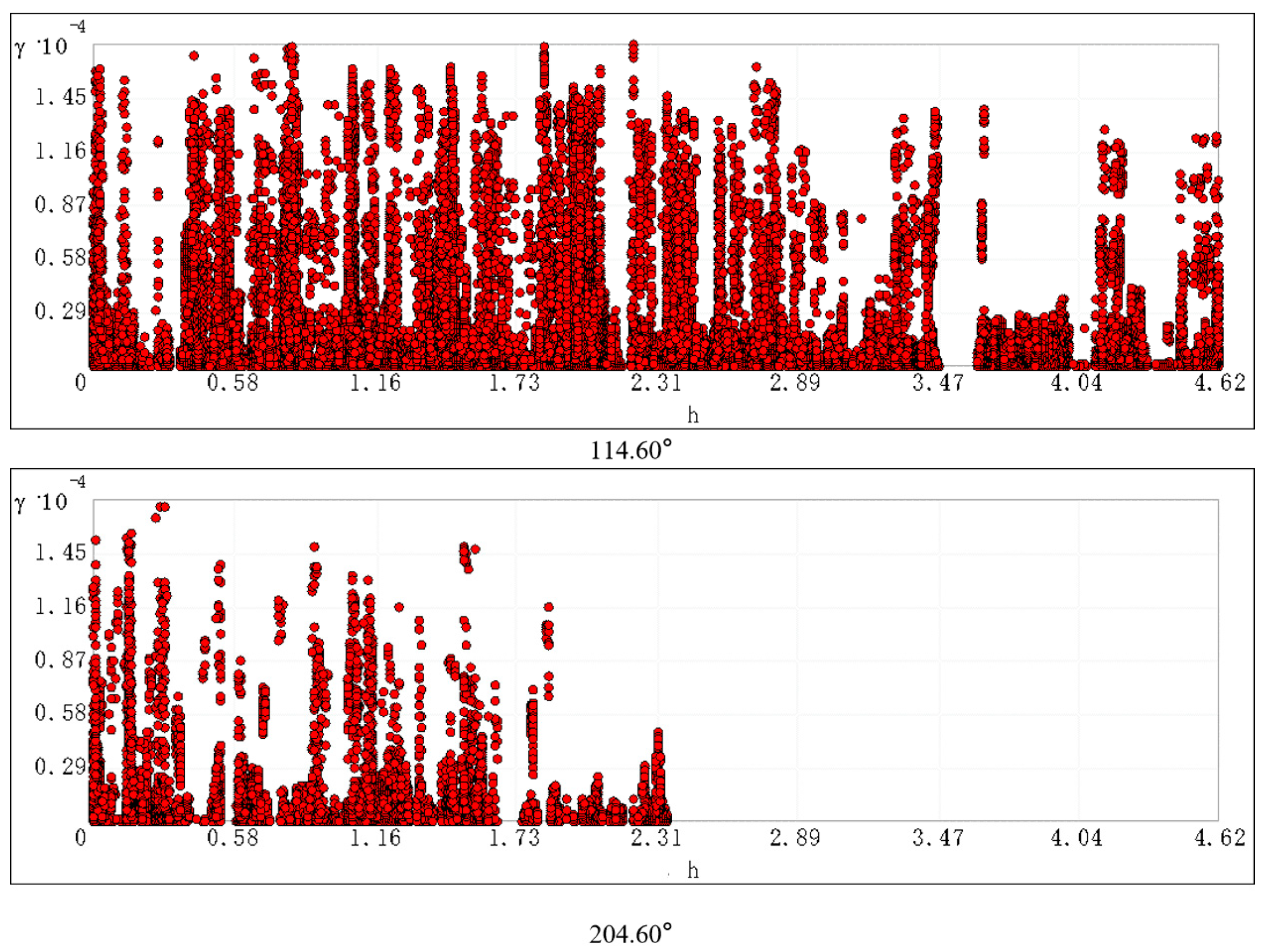 - Significant directional anisotropy exhibits a pronounced quadratic trend. Modeling spatial variation trends confirms that the strongest spatial correlation occurs along the northwest–southeast direction, with the spatial autocorrelation distance in the vertical direction reaching 2.39 times greater than in other directions.