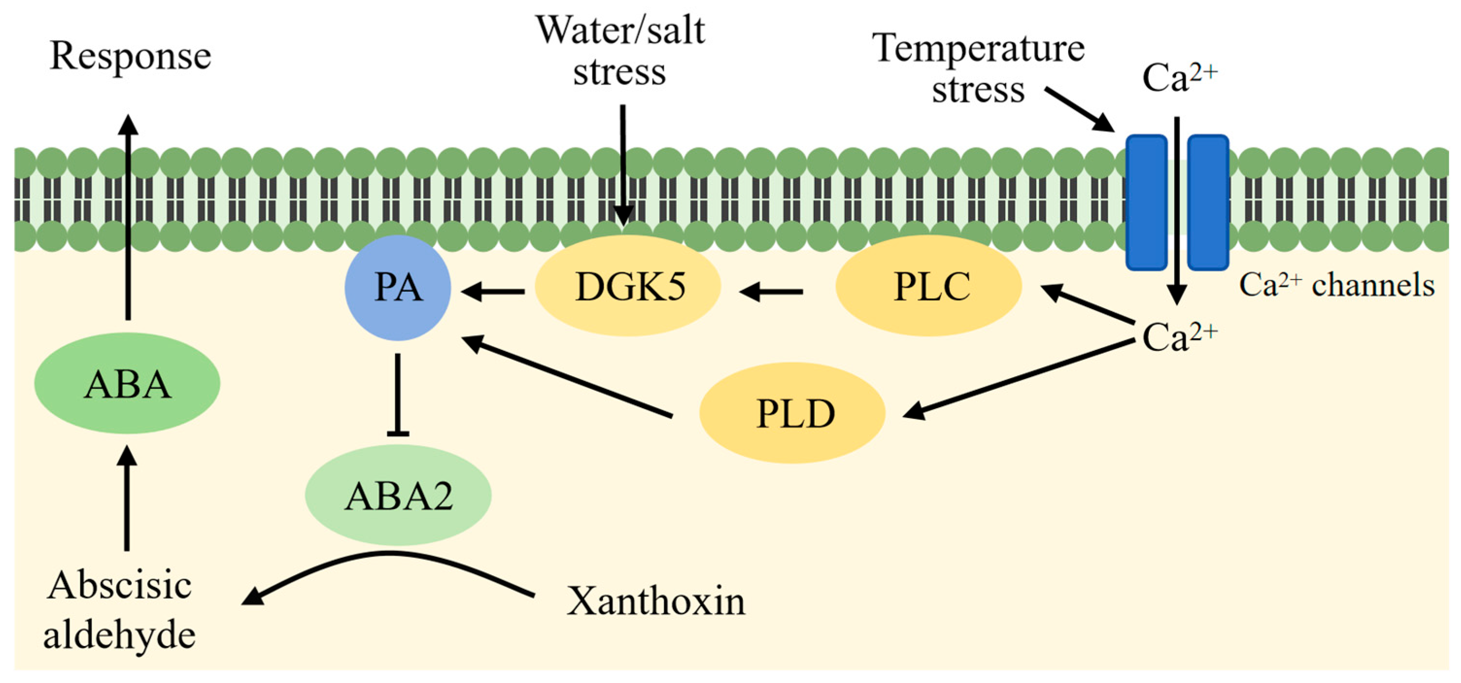 Xie, S.; Zhao, Y.; Tao, M.; Zhang, Y.; Guo, Z.; Yang, B. Progress and Prospects of Research on the Role of Phosphatidic Acid in Response to Adverse Stress in Plants. Agronomy 2025, 15, 2758. https://doi.org/10.3390/agronomy15122758